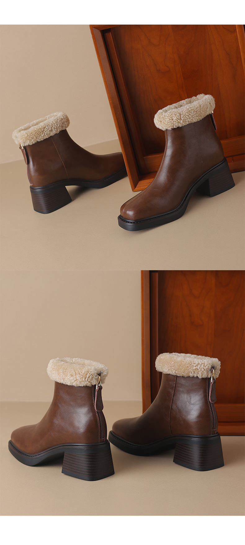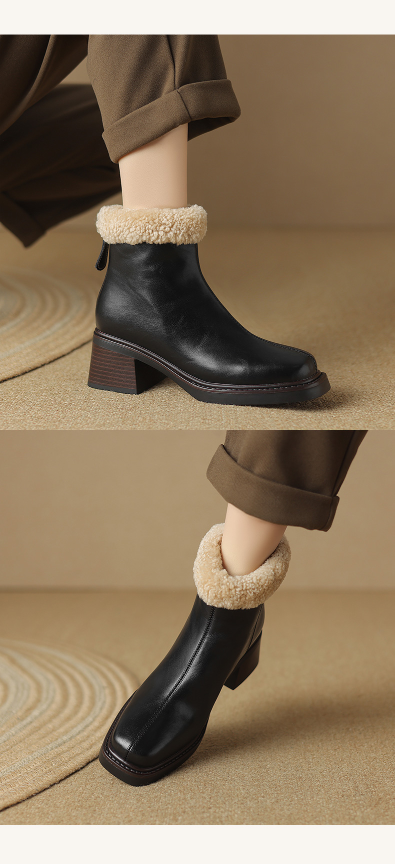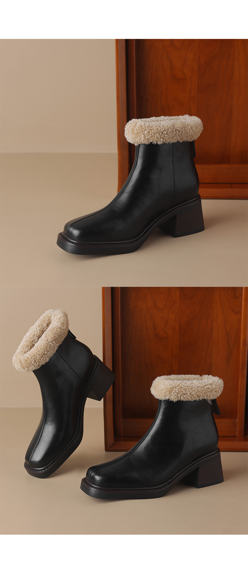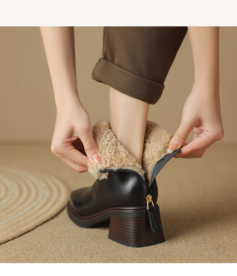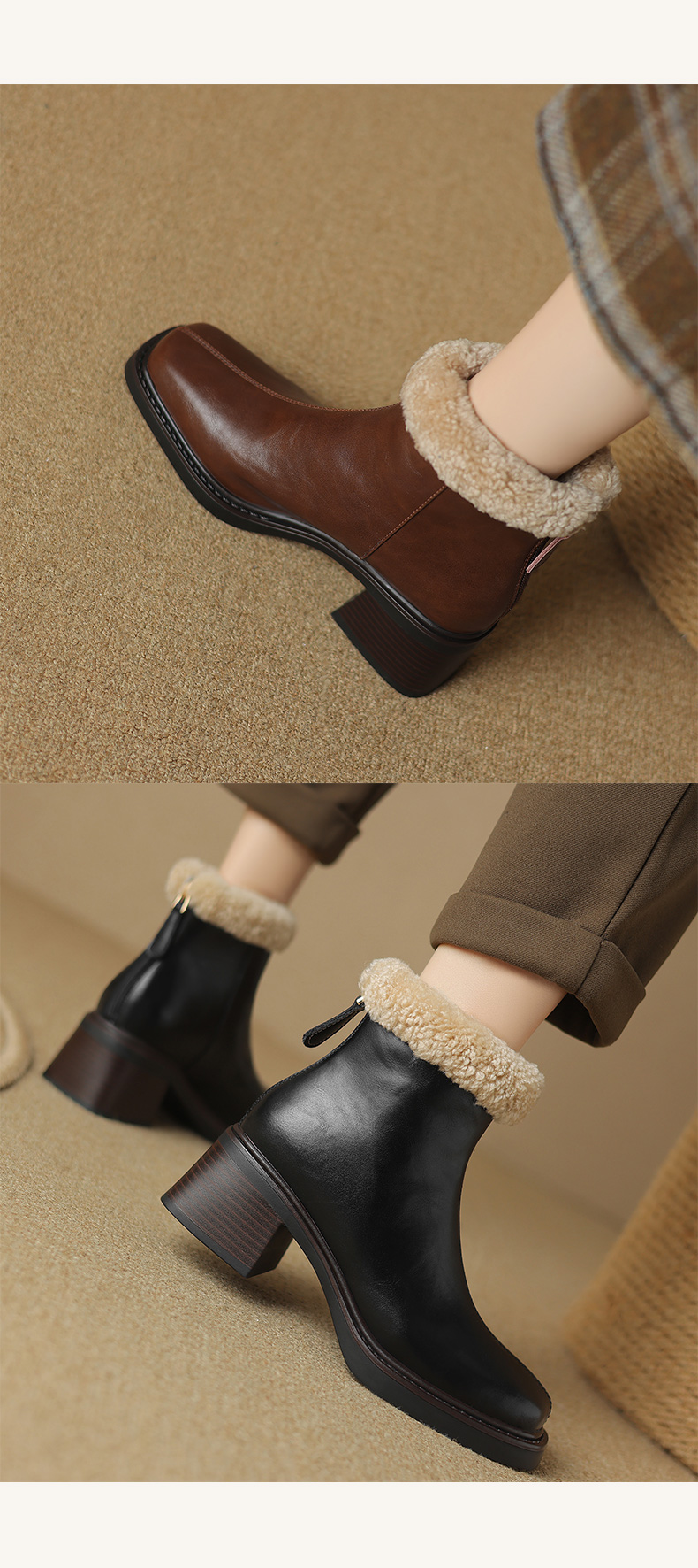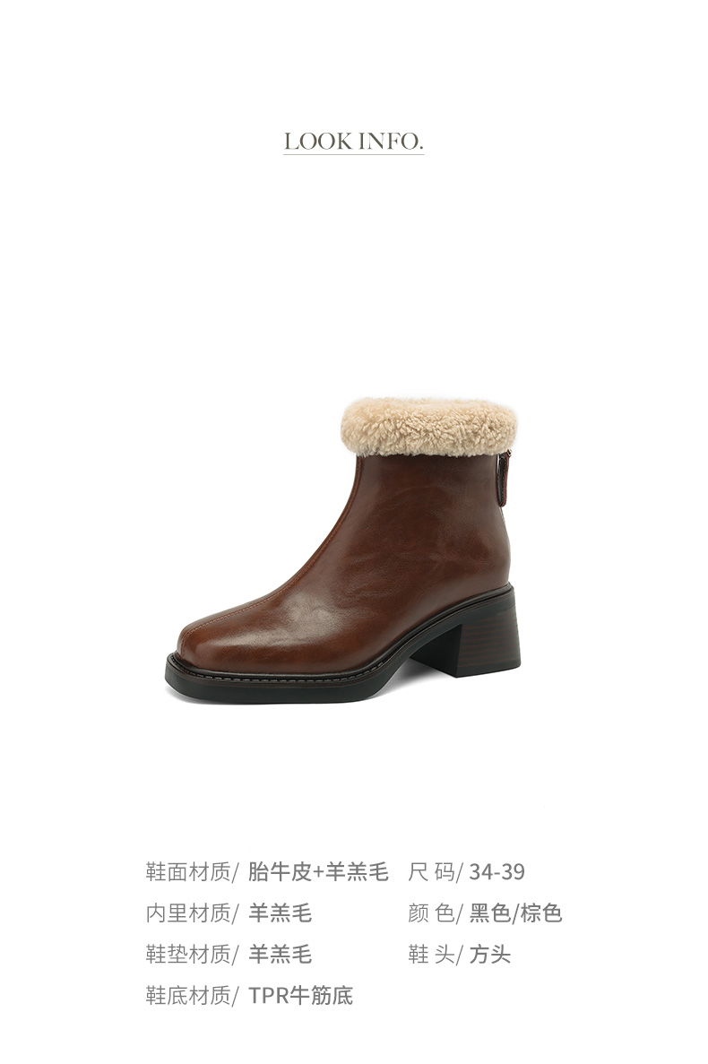 冬季新款,粗跟真毛全羊羔毛短靴LD-6641