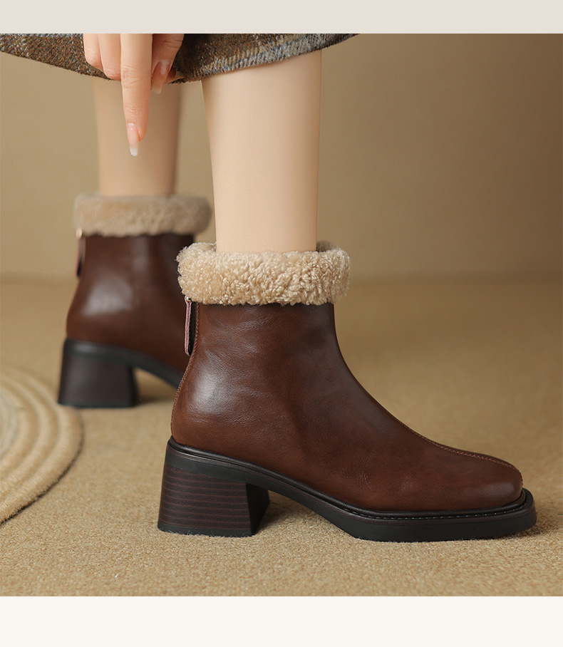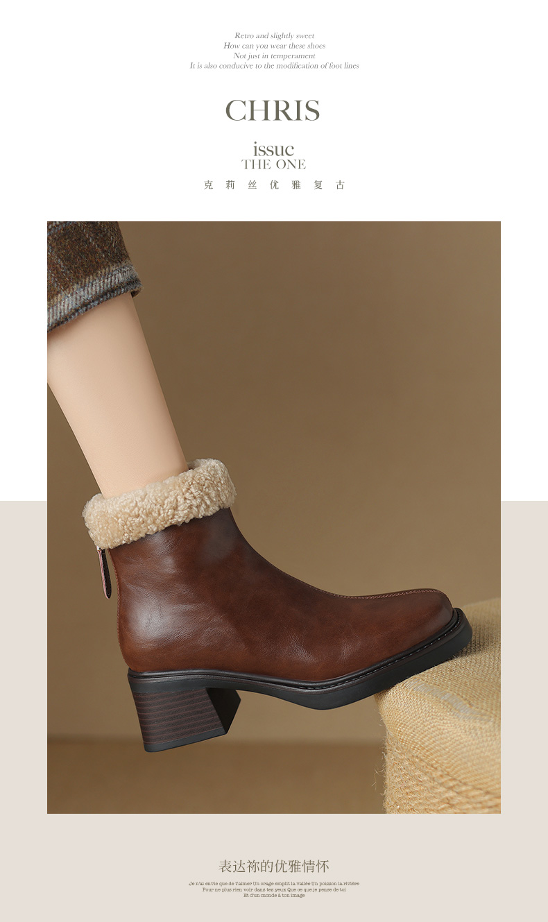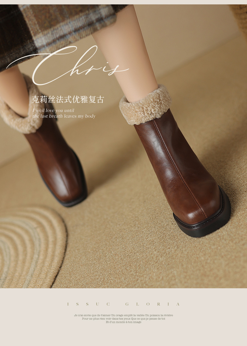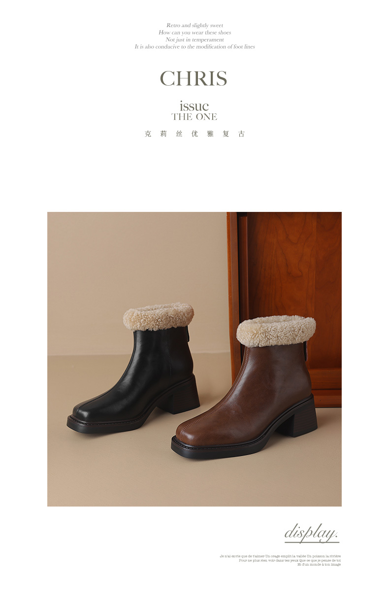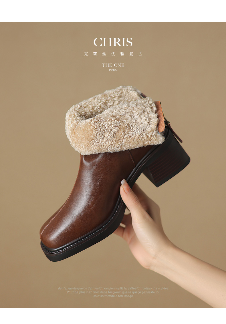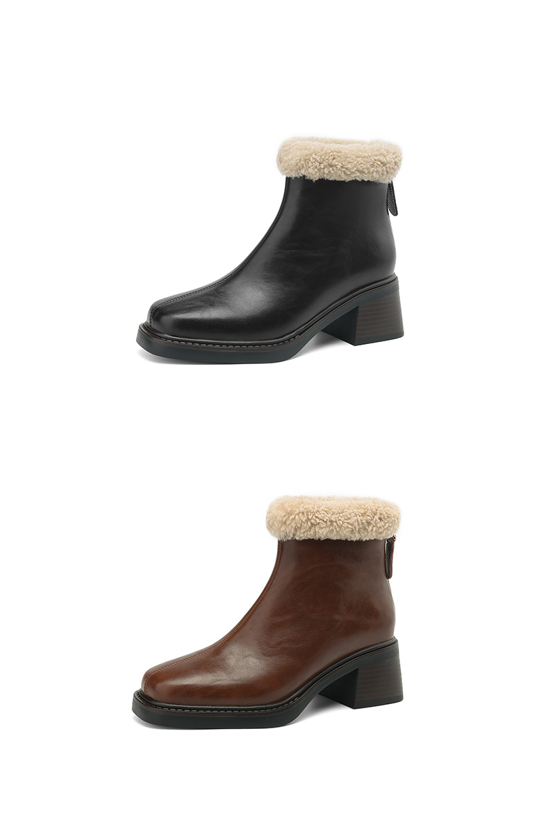 冬季新款,粗跟真毛全羊羔毛短靴LD-6641