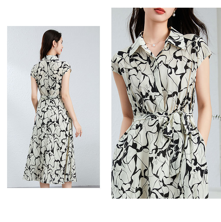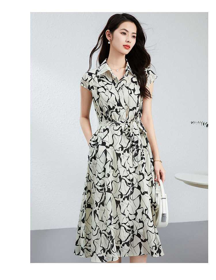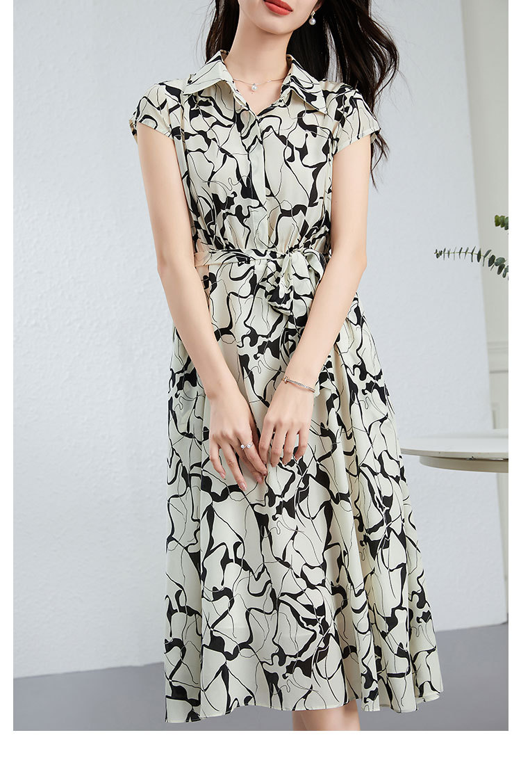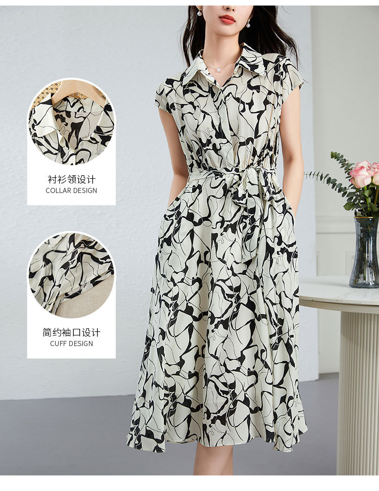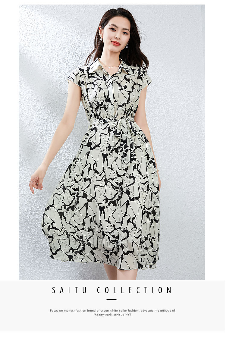 丁摩真丝连衣裙女年轻款夏季时尚宽松透气高端桑蚕丝碎花中长款衬衫裙AL250152