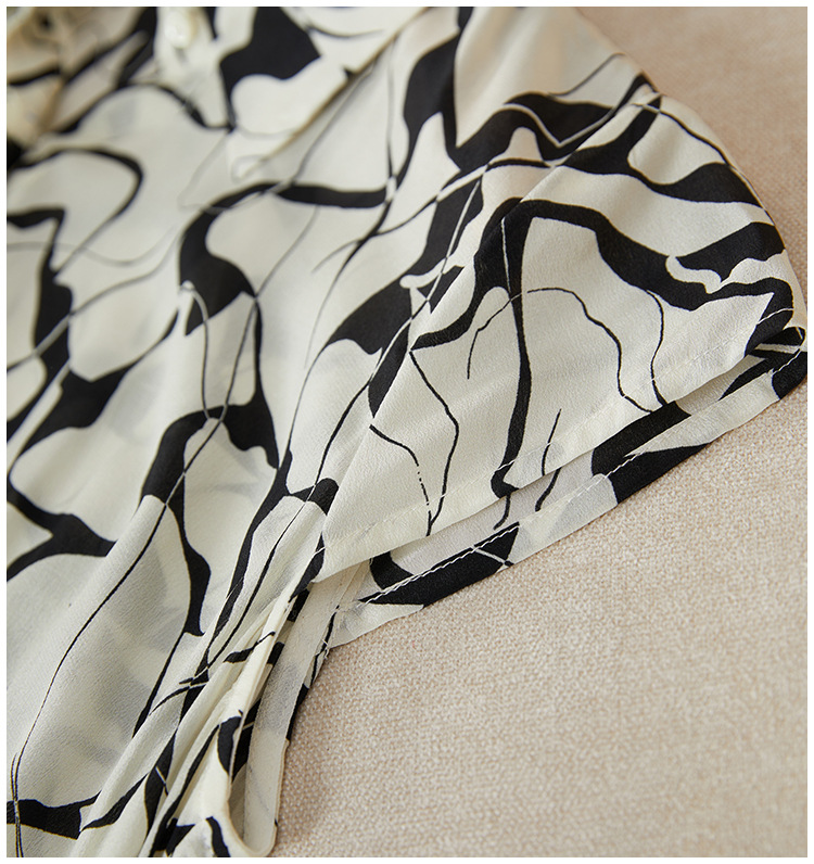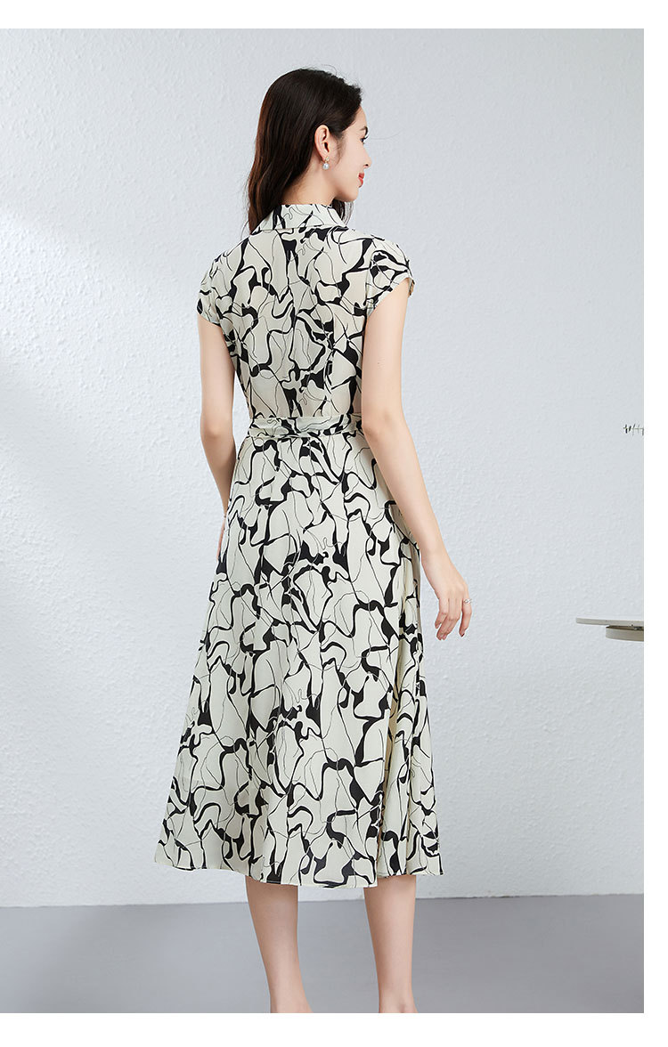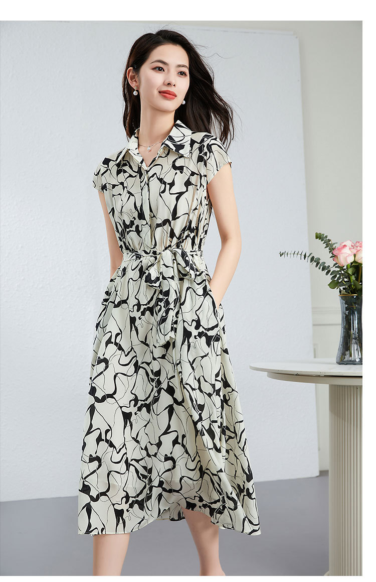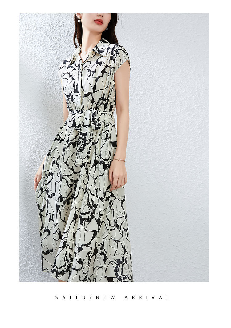 丁摩真丝连衣裙女年轻款夏季时尚宽松透气高端桑蚕丝碎花中长款衬衫裙AL250152