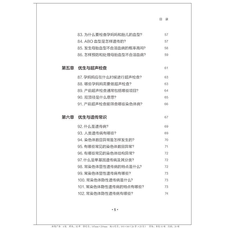 本书围绕优生与检测的基本常识,以回答孕妈妈提问的方式,在解答优生与遗传、优生与咨询、优生与环境、优生与生殖、优生的超声检查、优生的实验室检查以及常见的染色体病和基因病常识的基础上,重点答疑目前产前筛查和诊断方法的种类、各方法的优势、局限性及适用对象,进而对孕妈妈应该如何根据自身情况选择合适的产前筛查或诊断方法提出了参考意见。适宜于(孕、产前)育龄夫妇们参考,也适用于从事优生咨询、产前筛查和诊断的医务人员以及作为出生缺陷防控的科普宣传资料。