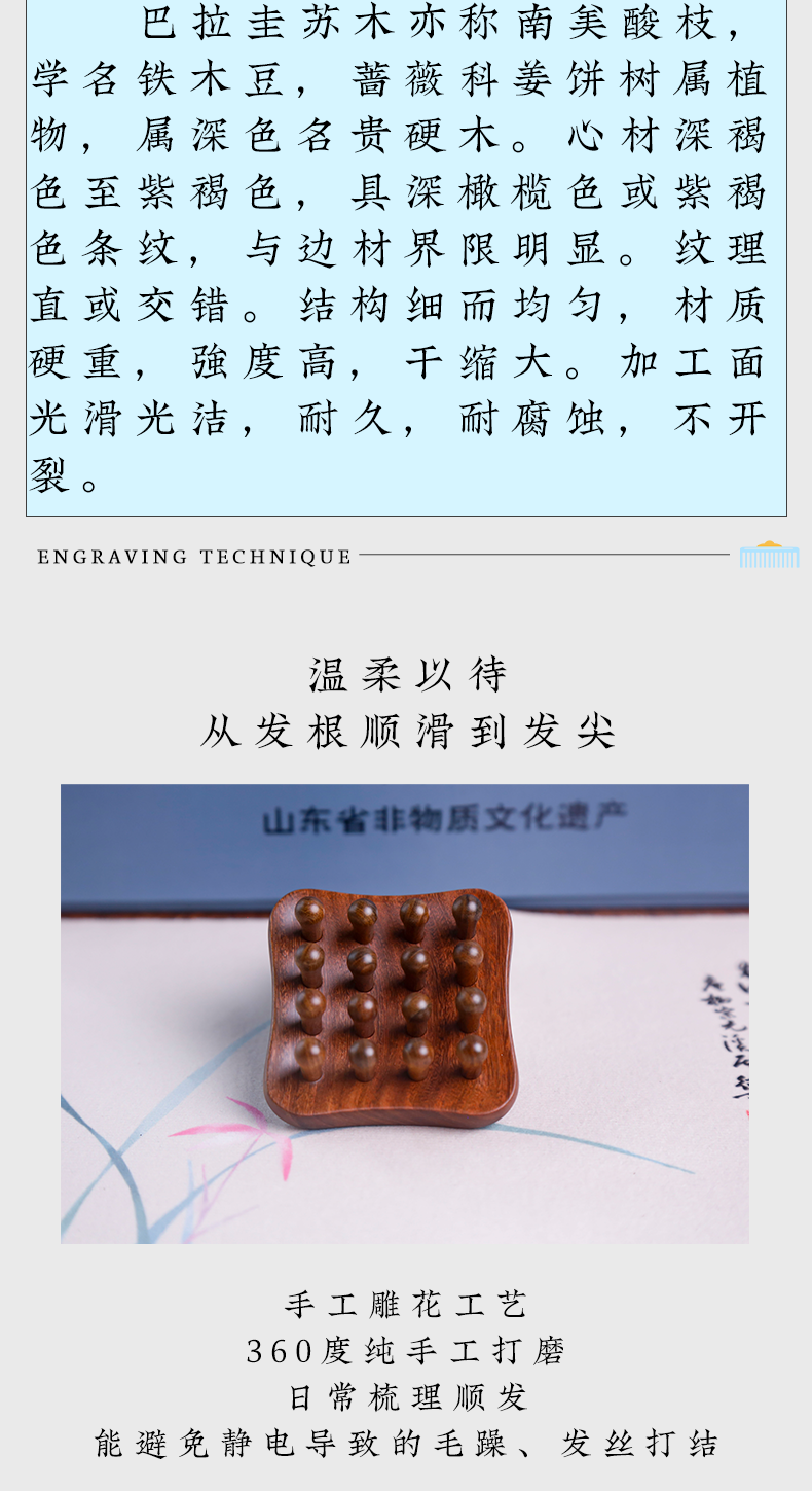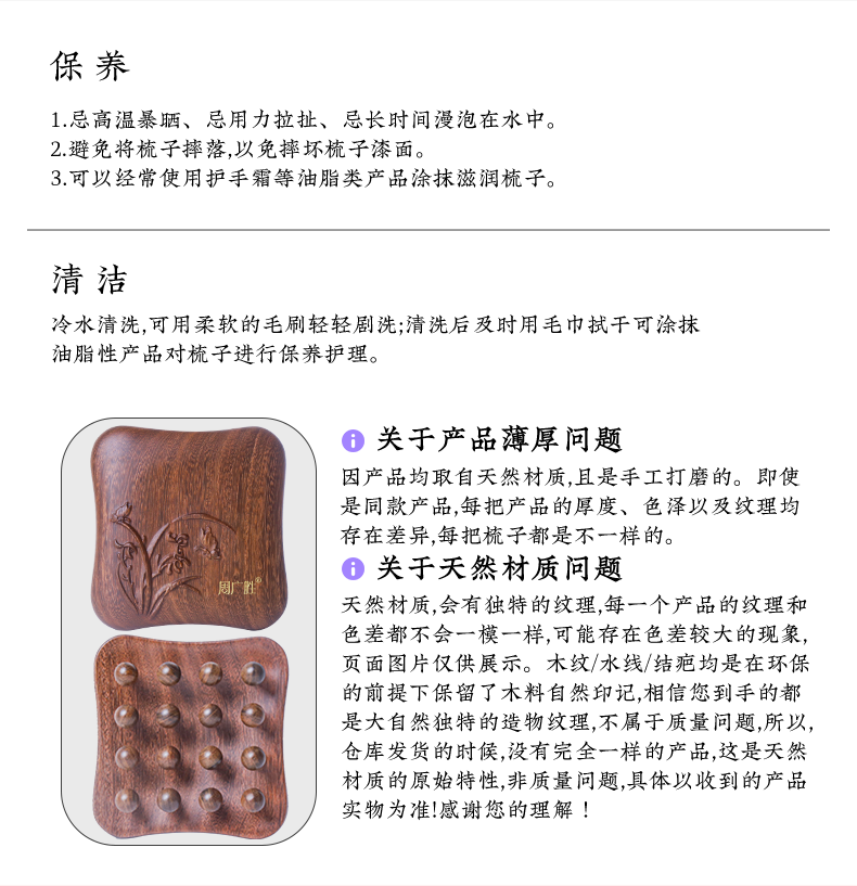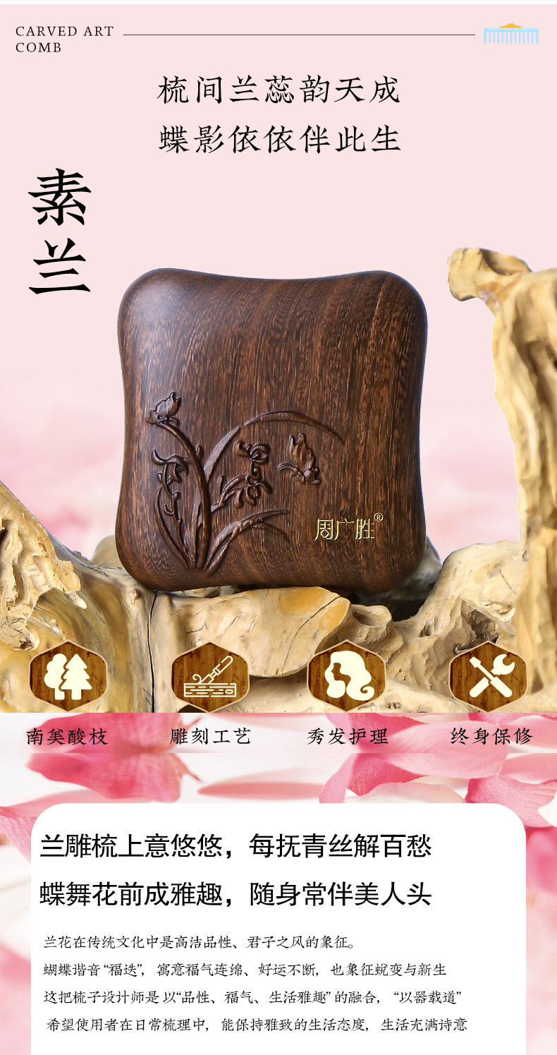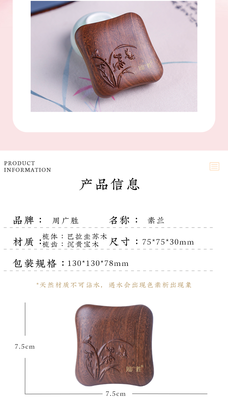 周广胜天然南美酸枝镶齿素兰按摩梳头皮经络按摩梳护发礼盒