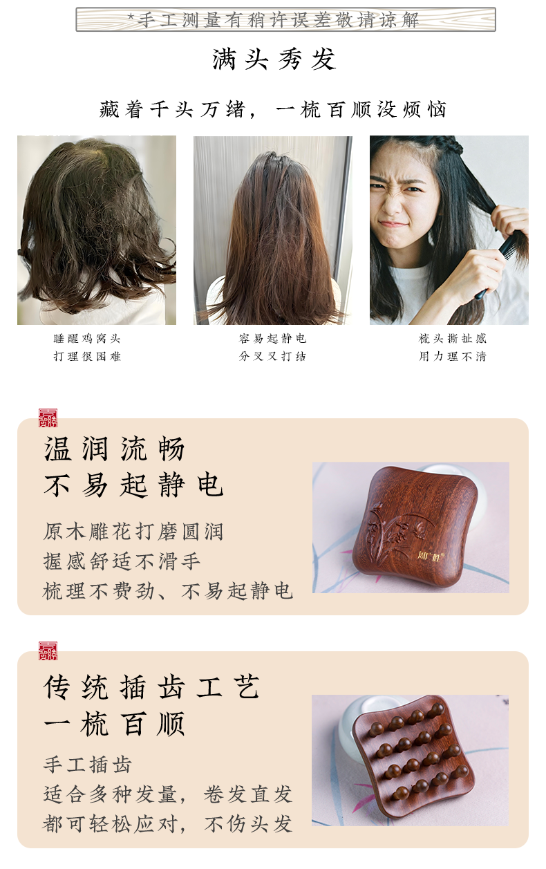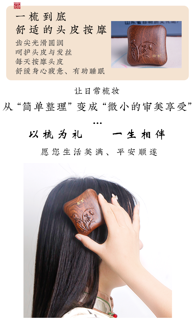 周广胜拨筋按摩梳小鲲天然沉贵宝木镶齿头皮按摩头发护理