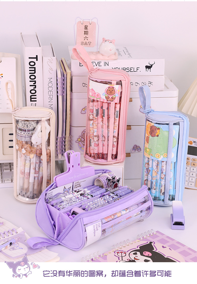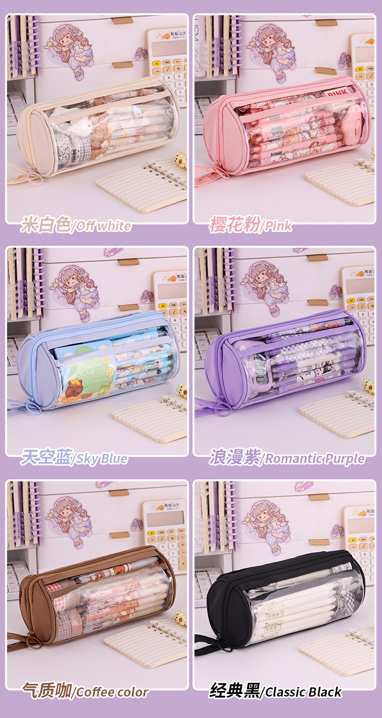 【圆筒笔袋❗透明大容量空间收纳】开学季新款透明笔袋创意简约多功能小学生文具铅笔盒大容量文具盒。rg