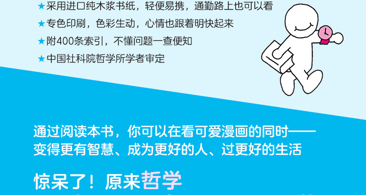 《惊呆了!哲学这么好》日文版上市后,迅速登顶人文思想类图书排行榜,销量已突破15册。中文版由中国社会科学院哲学研究所学者特别审定,采用进口纯木浆书纸,轻便易携,专色印刷,色彩生动,心情也跟着明快起来。
