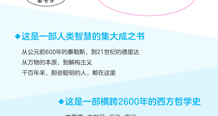 2.这是一部纵贯2600年的西方哲学史:从公元前600年的泰勒斯到21世纪的德里达,从头阅读,便可把握西方哲学的发展脉络;
