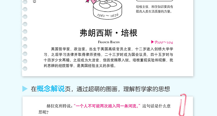3.这是一本与众不同的哲学读物:在人物介绍页,了解哲学家的生平、名言、著作;在概念解说页,通过超萌的图画,理解哲学家的思想;
