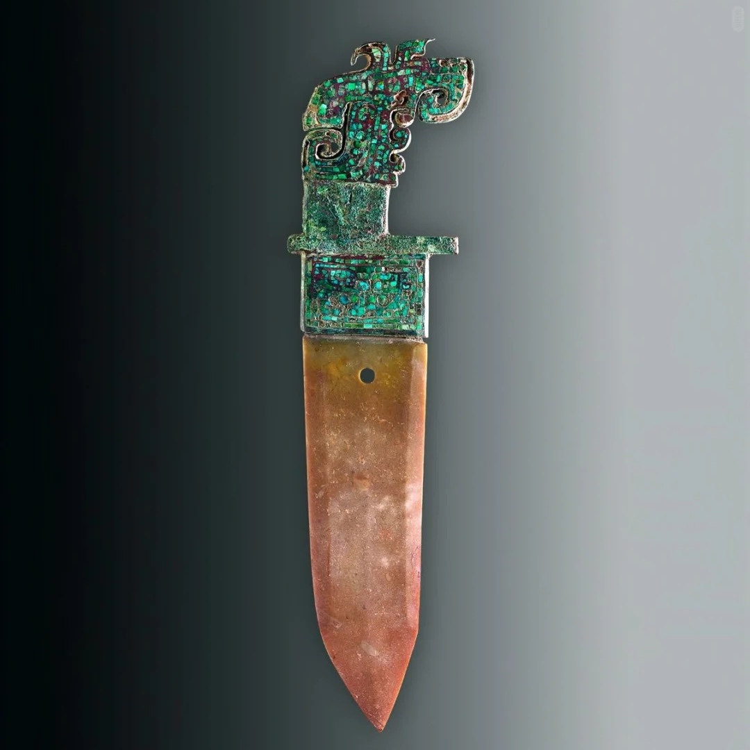 仿古玉戈,兽面纹和鸟纹,古意庄重,