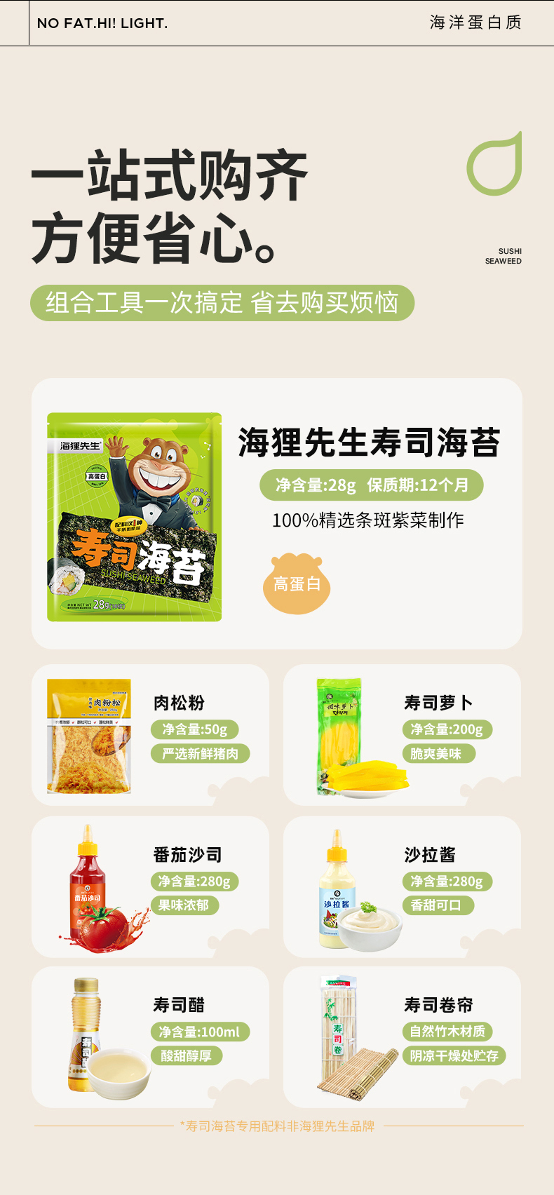 | 【品名】海狸先生寿司海苔组合 【保质期】12个月 【储存条件】置于阴凉干燥处 【产地】连云港 【发货地】大连、连云港 【发货快递】韵达、邮政、极兔、中通、圆通 【不发货区域】新疆、西藏、港澳台地区不发 【发货时效】48小时,周日节假日顺延 |