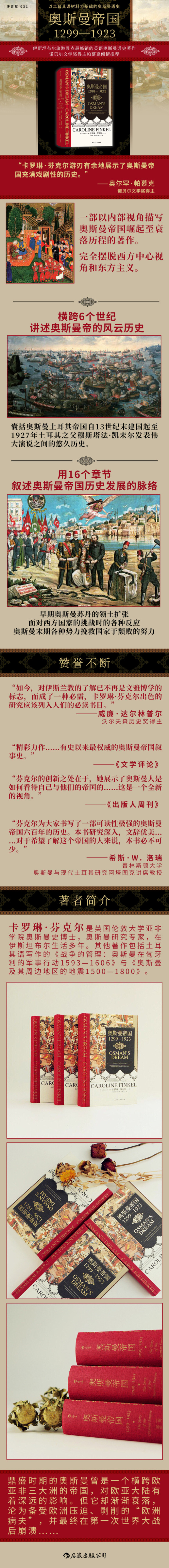芬克尔为大家书写了一部可读性极强的奥斯曼帝国六百年的历史。本书研究深入,文辞优美……对于希望了解这个帝国的人来说,本书必不可少。
