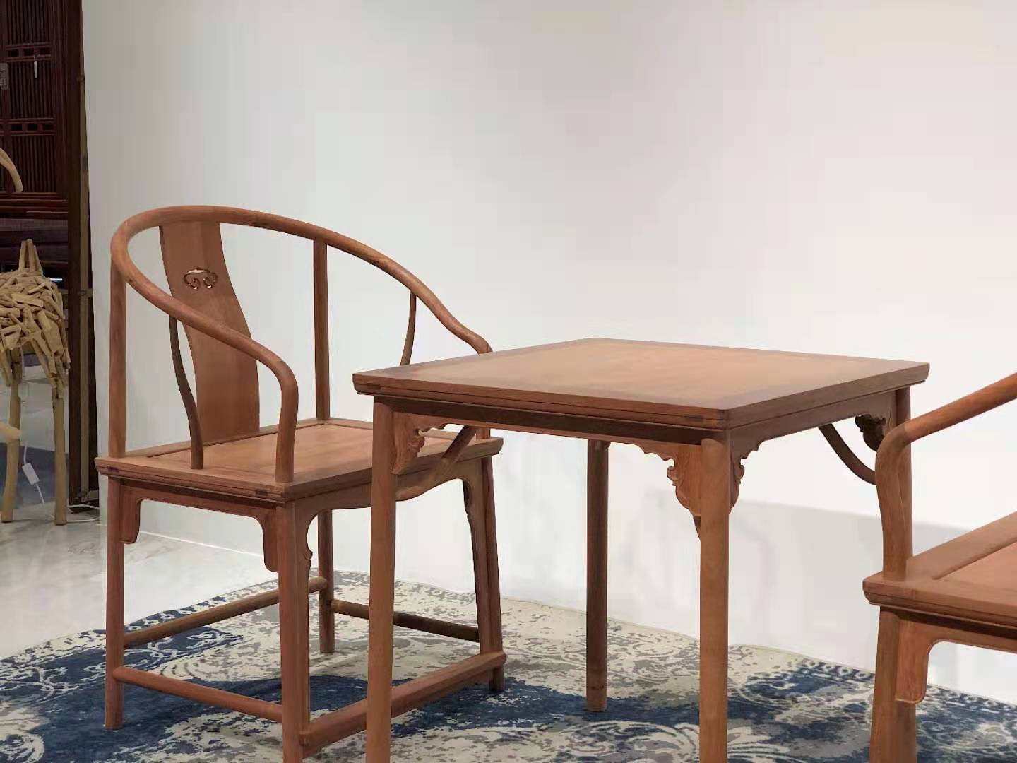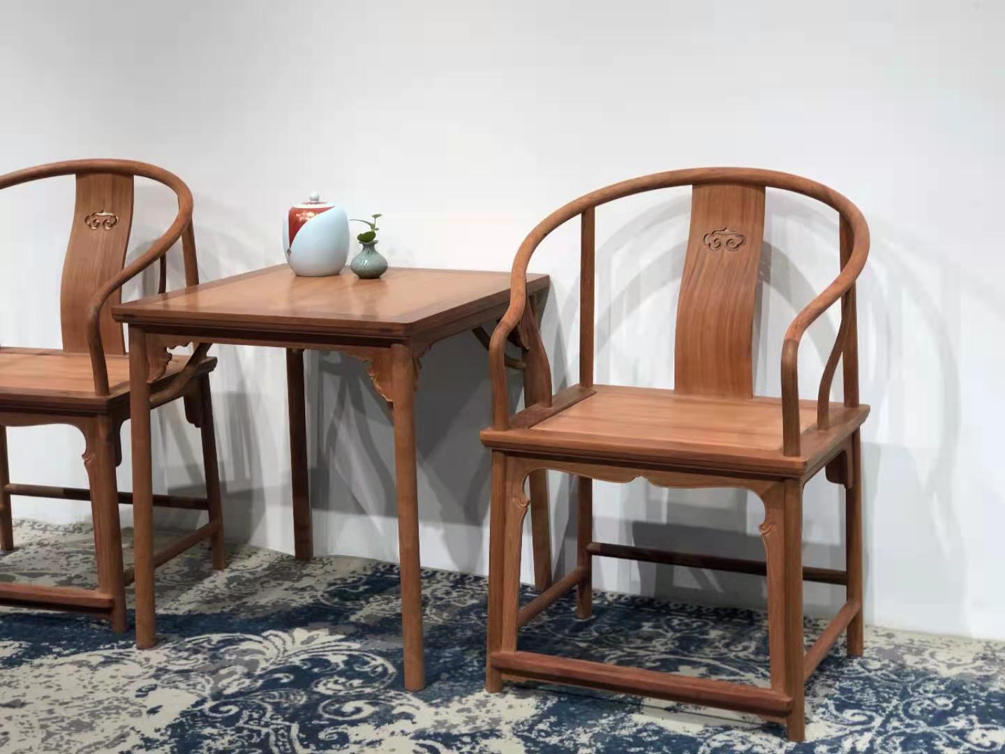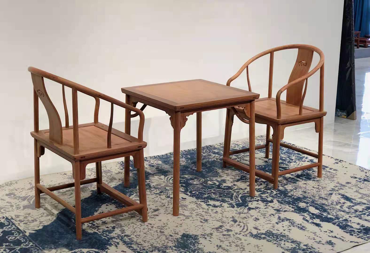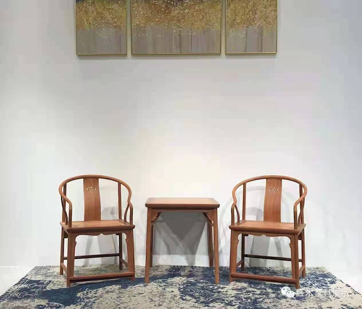 此款圈椅三件套的基本设计,有两个灵感来源,一是赫赫有名的安思远藤条垂手圈椅,二是改正统的小茶几为小棋桌。这种设计打破了传统圈椅更适合在室内陈设使用的惯例,赋予了它更为休闲和灵活的应用场景。