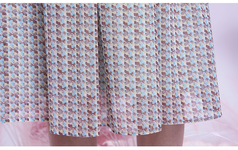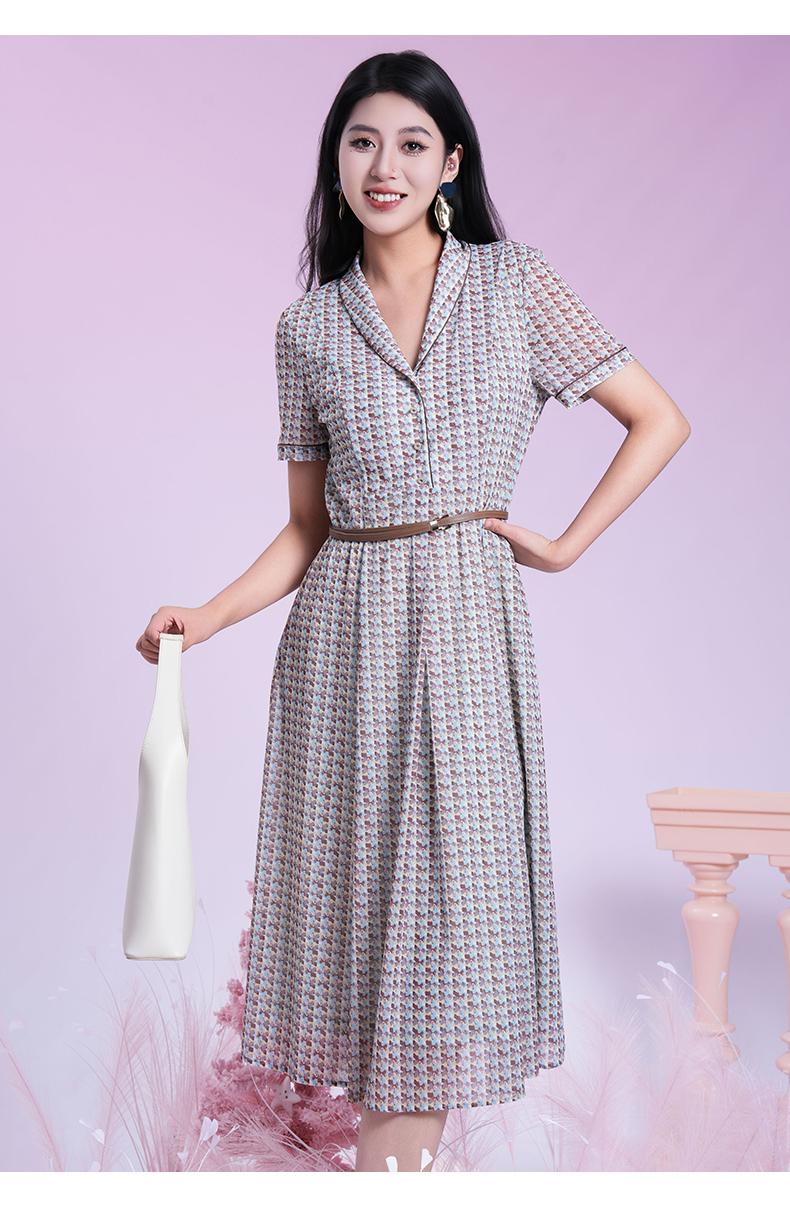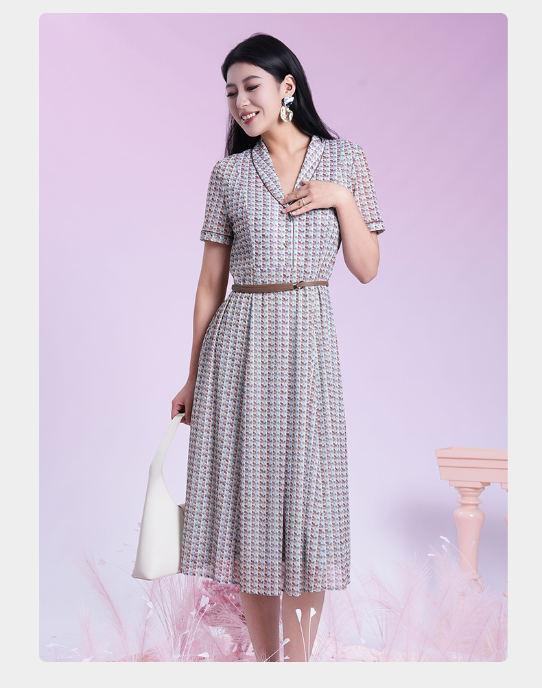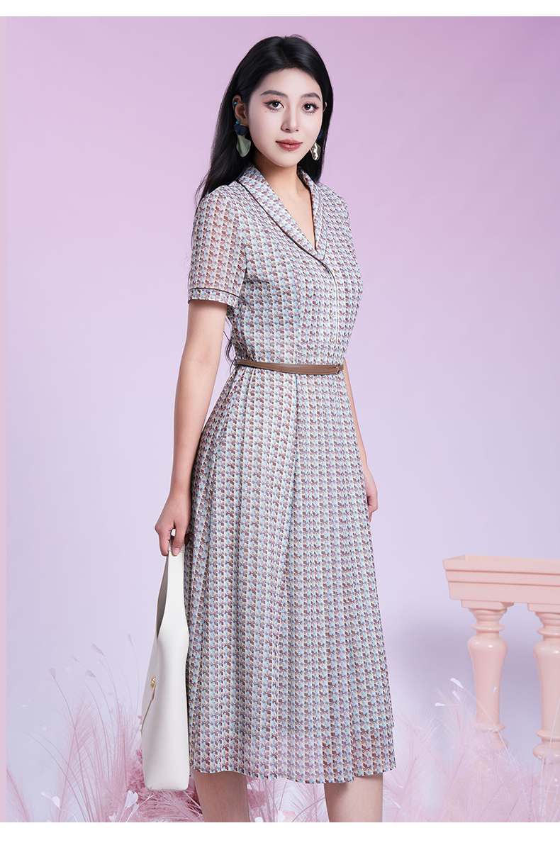 乔万尼2025夏季新款撞色艺术印花都市风通勤收腰连衣裙ED2E538