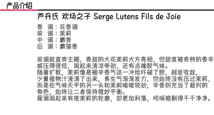 芦丹氏 欢场之子欢乐之子 Serge Lutens Fils de Joie 小样/正装