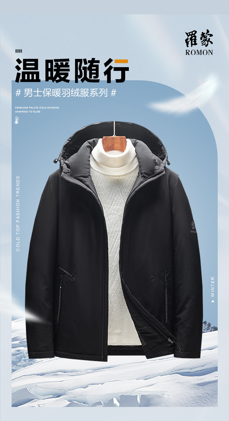 19YZ2217【90白鸭绒】罗蒙羽绒服男士短款秋冬季保暖休闲连帽纯色羽绒外套