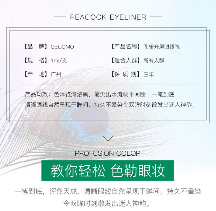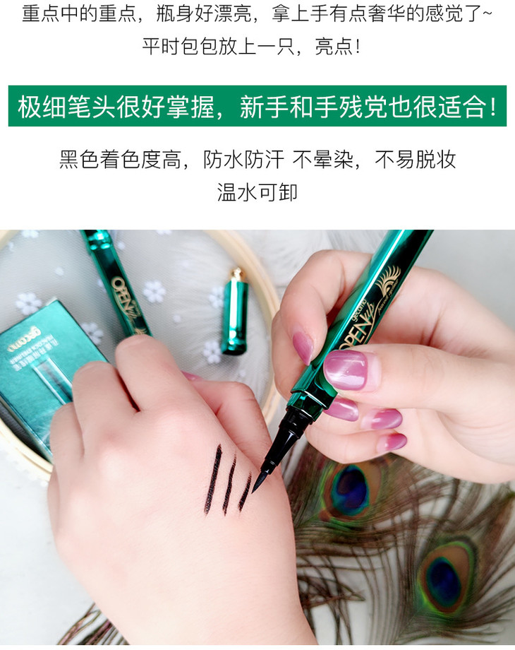 CQHZ-格蒙孔雀开屏眼线液笔速干防水防汗持久不晕染不脱妆初学者彩妆TZW