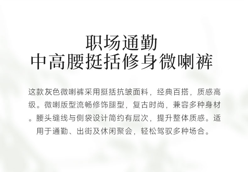乔万尼新品挺括利落时尚百搭显瘦微喇裤EZ4F162