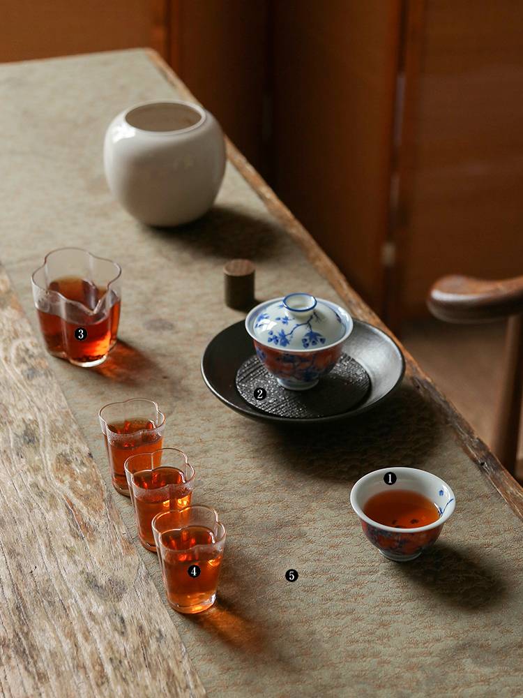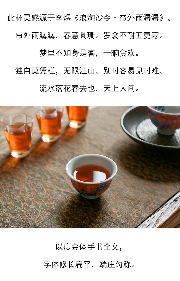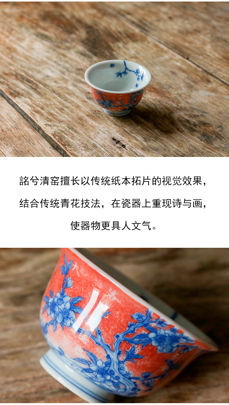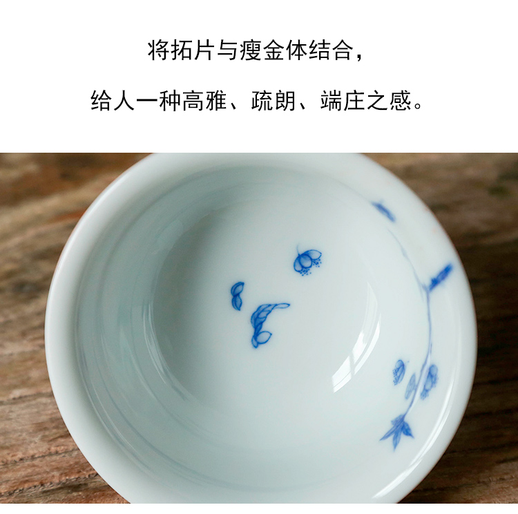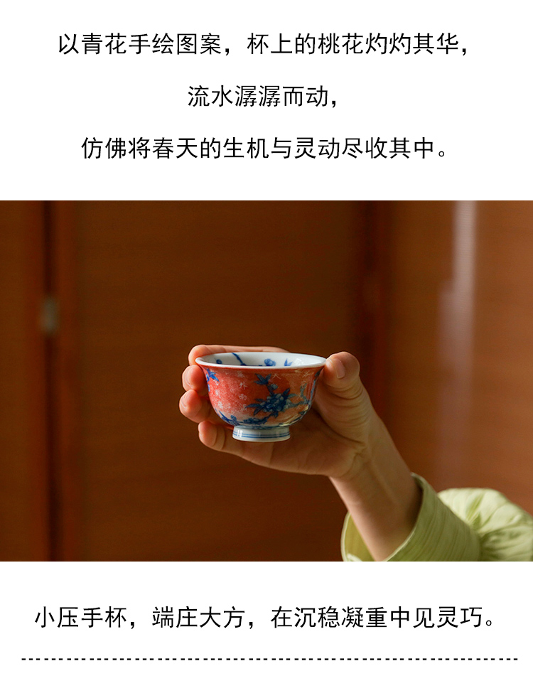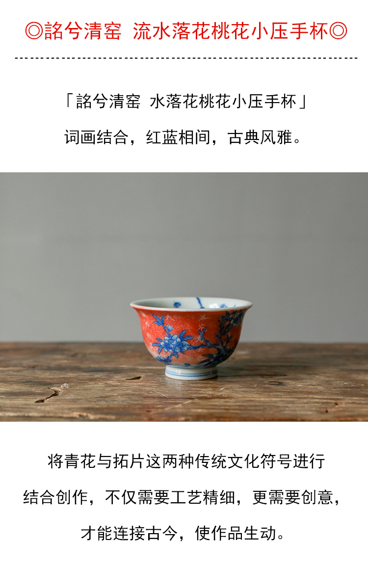 茶香记 詺兮清窑流水落花桃花小压手杯100ml青花手绘陶瓷茶杯品杯