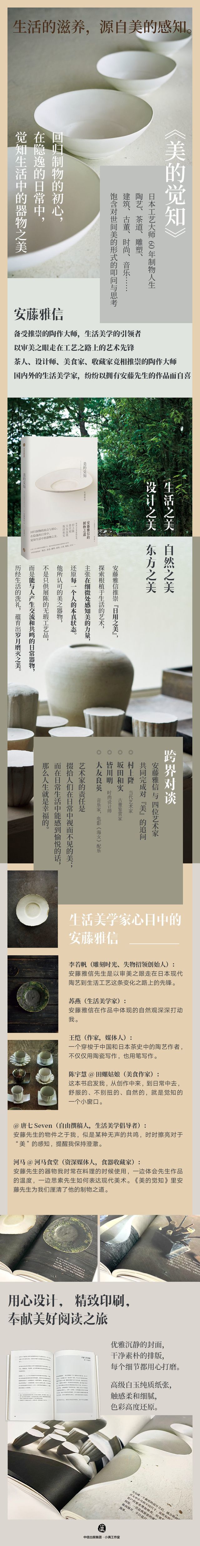 什么是美,生活中的美是什么样的,这也是我一直在思考的课题。我时常因为自己的出发点过于日常而对这个课题有些动摇,安藤雅信先生的这本书启发了我:从创作中来,到日常中去,舒服的、不别扭的、自然的,就是觉知的一个小窗口。