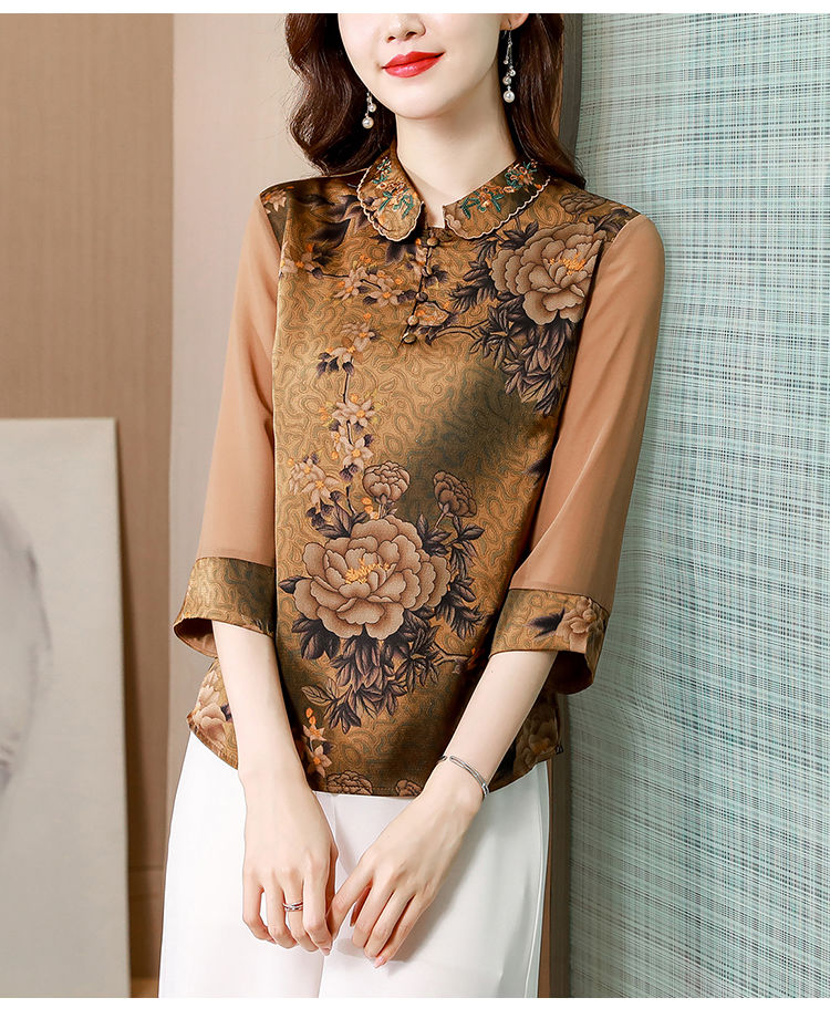 DP1456 真丝大码绣花桑蚕丝衬衫女2022夏季新款领宽松洋气显瘦印花上衣女