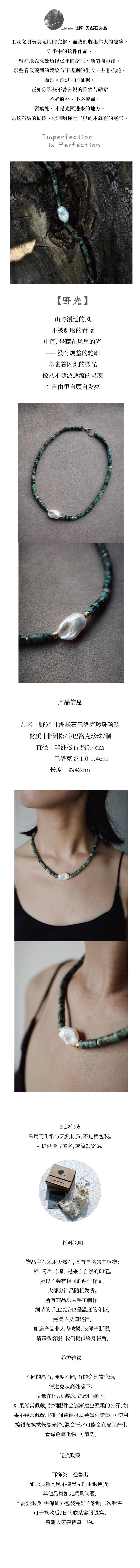 「野光」非洲松石巴洛克珍珠项链 | 总长约45cm 不被驯服的青蓝 to me 天然石饰品