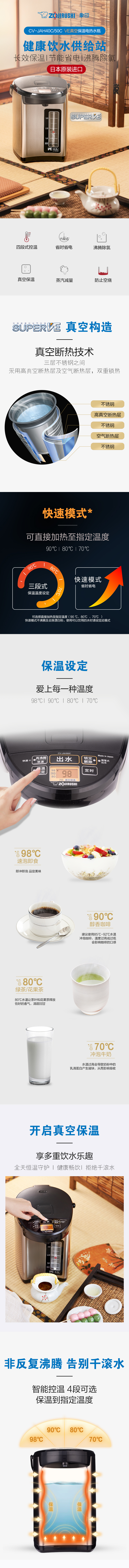 象印/ZOJIRUSHI 恒温省电电热水瓶壶CVJAH40C 新品上市 防倾漏