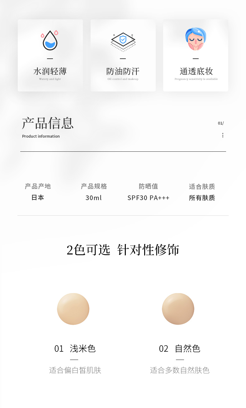 Naturaglace新款水感粉底液水润遮瑕保湿光泽女养肤孕妇30ml