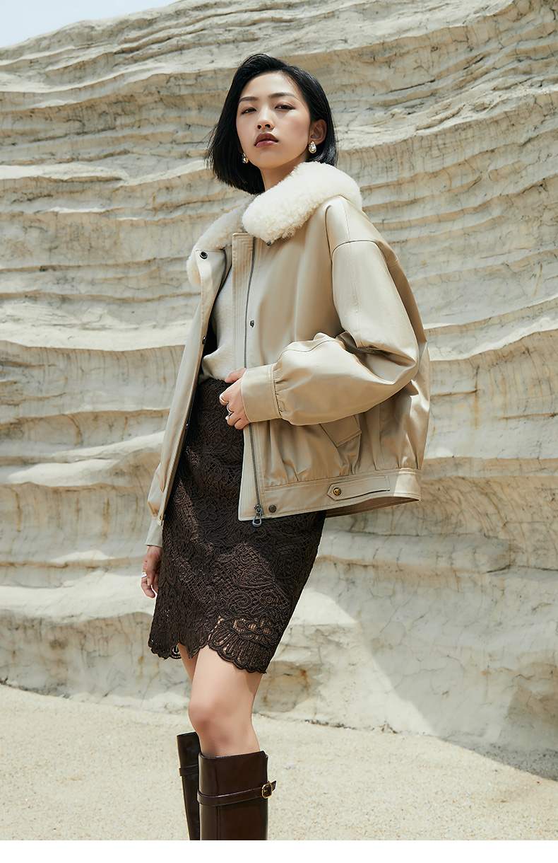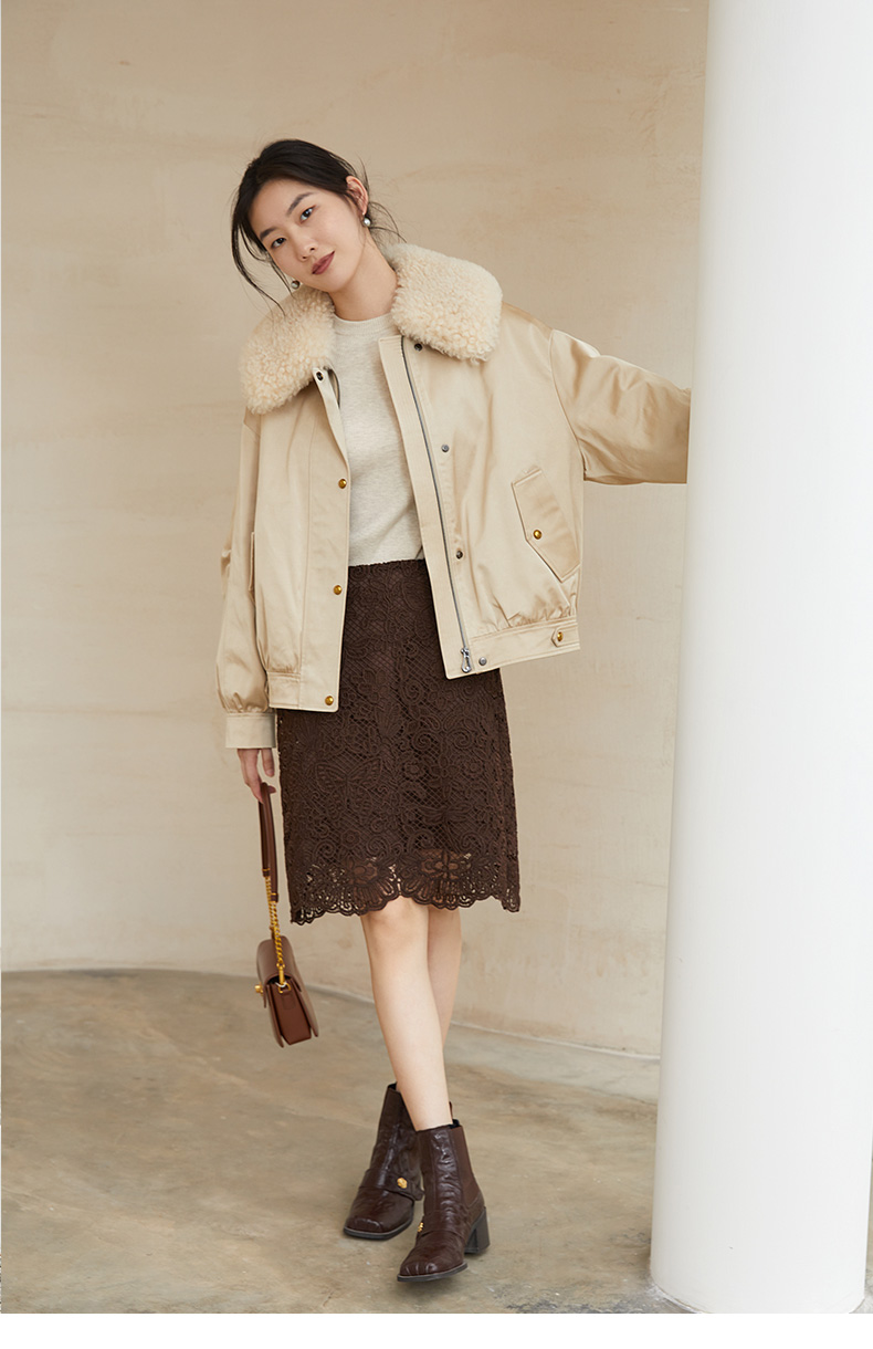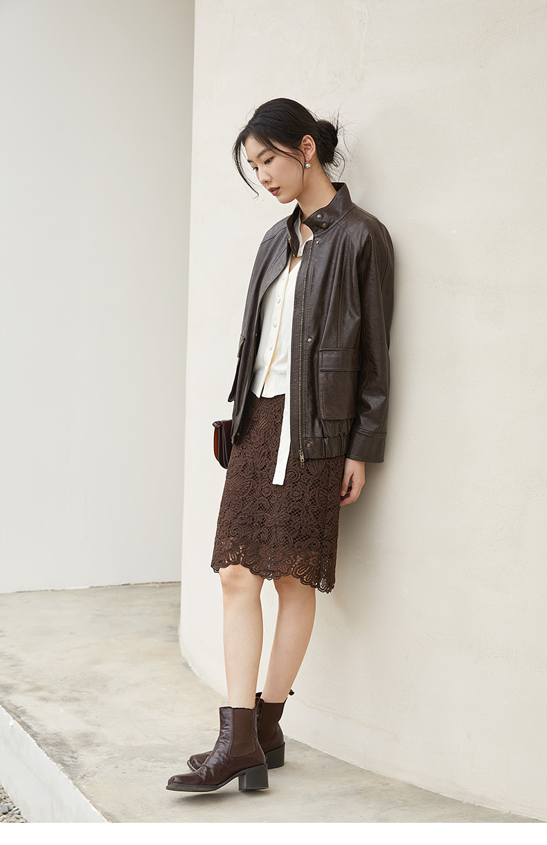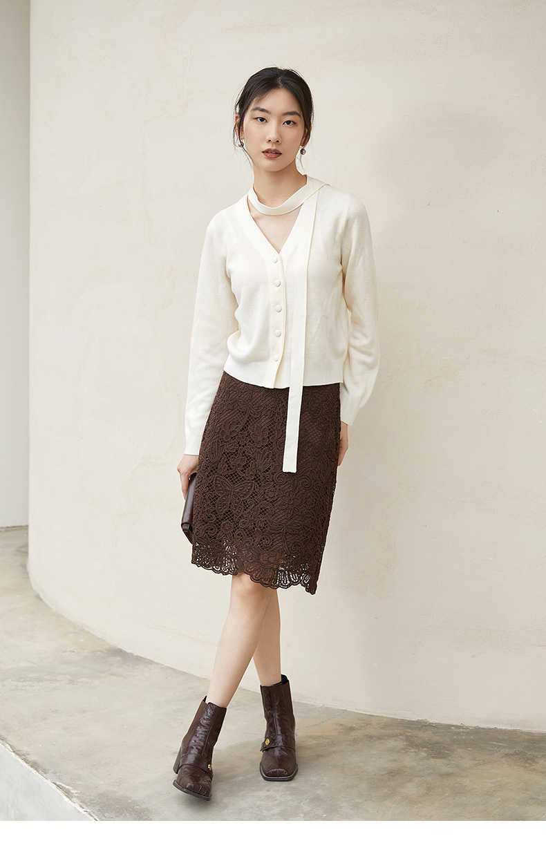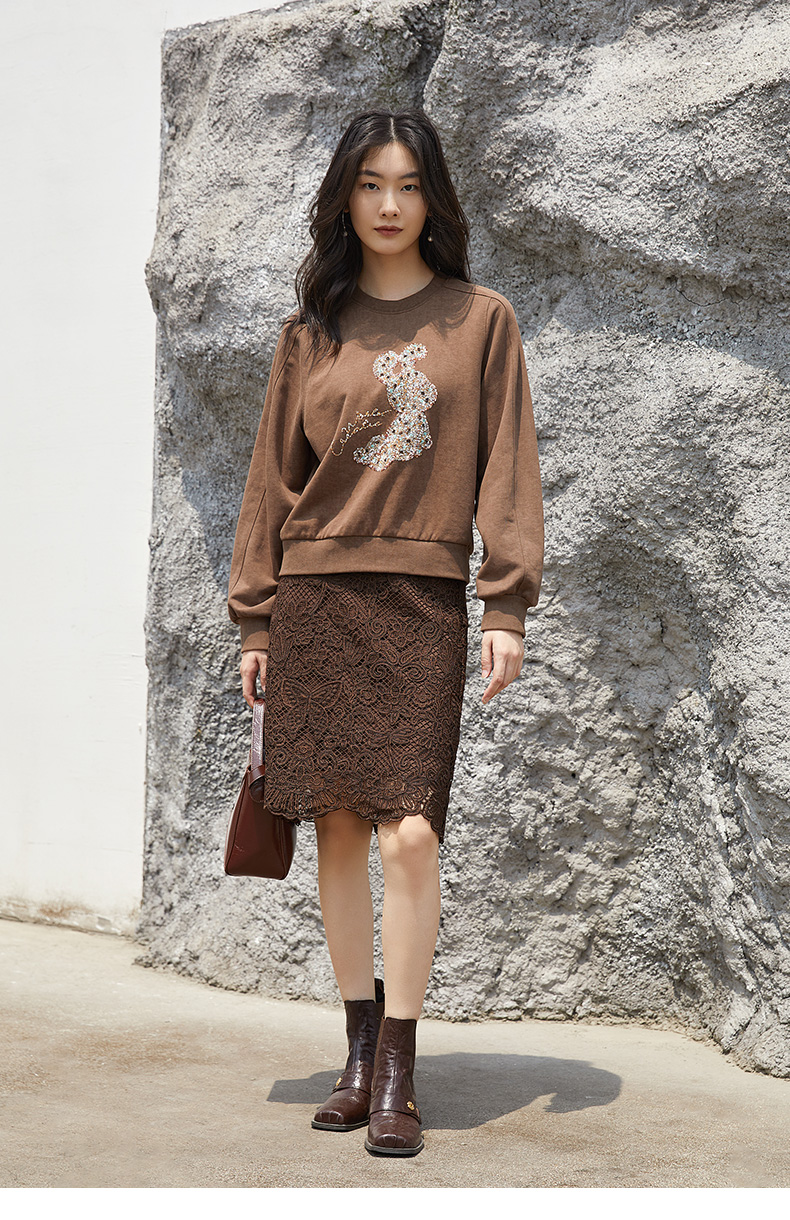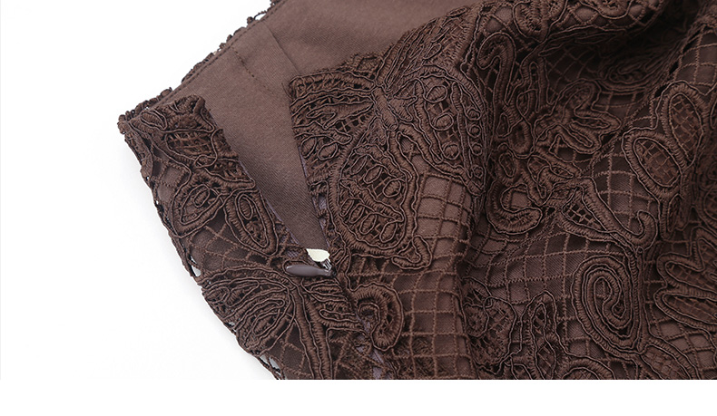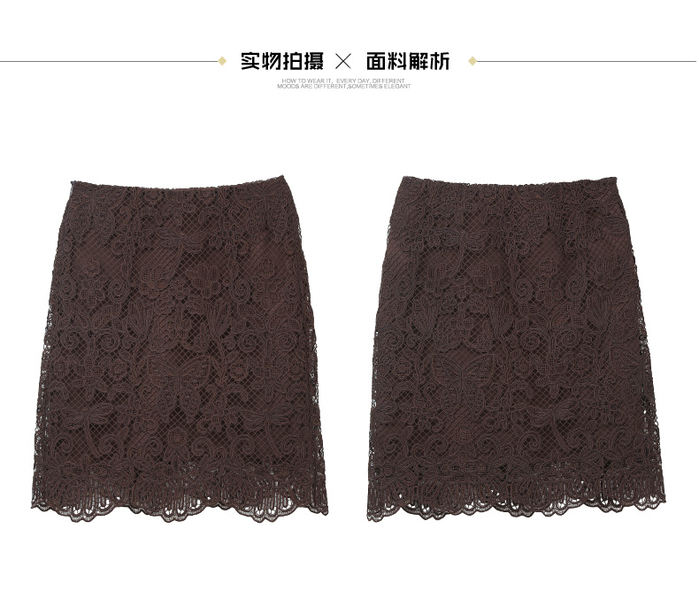 2025 秋冬新款复古棕色蕾丝半身裙 蝴蝶花纹高腰显瘦包臀裙 优雅气质中长款镂空一步裙