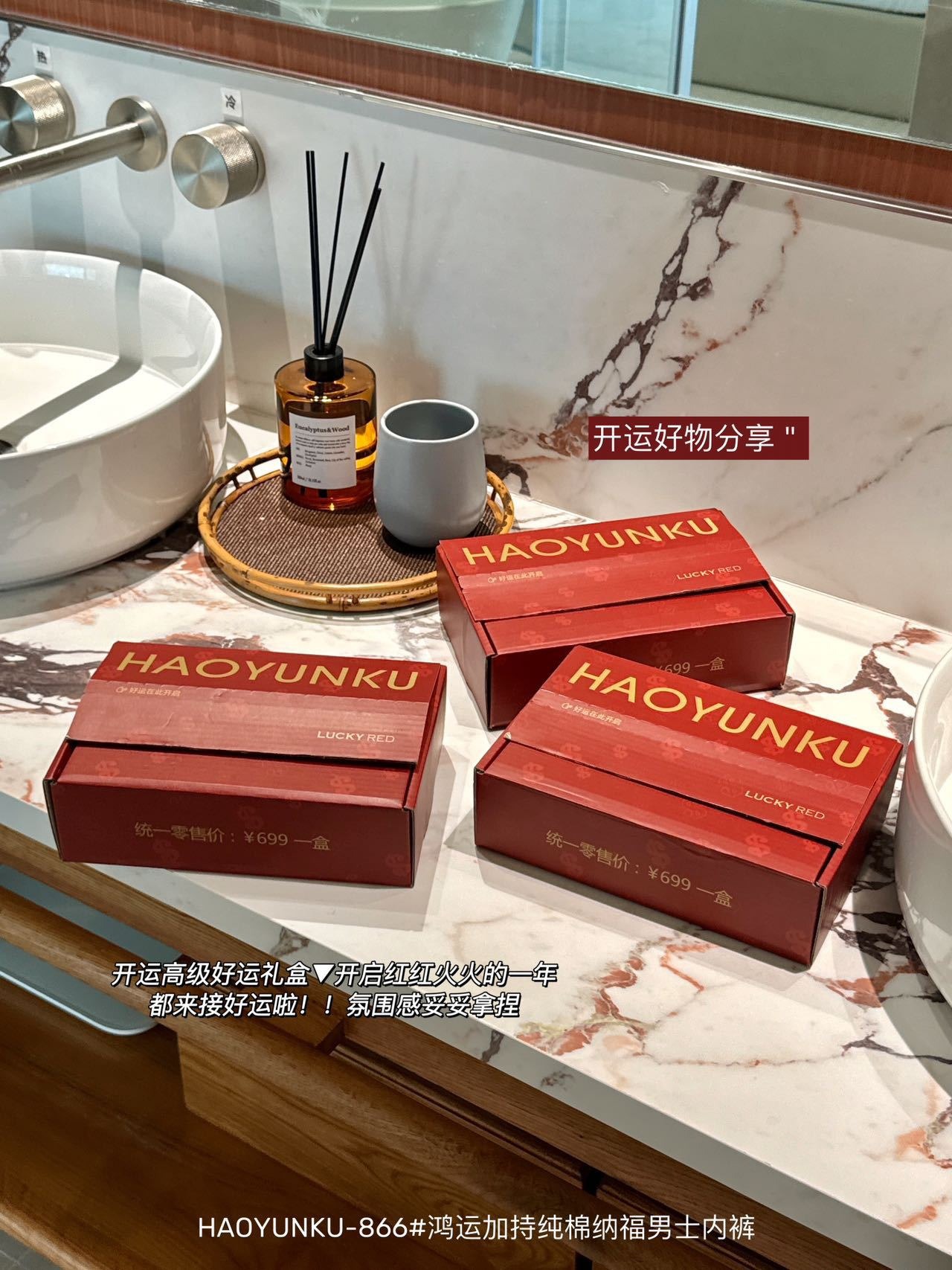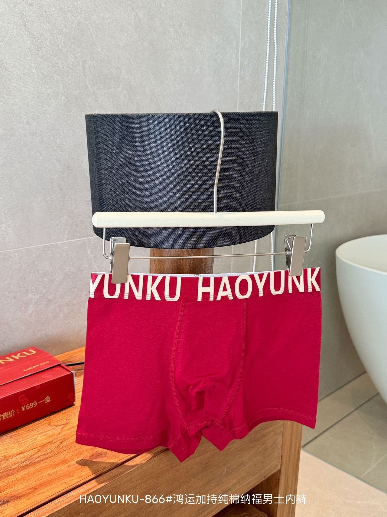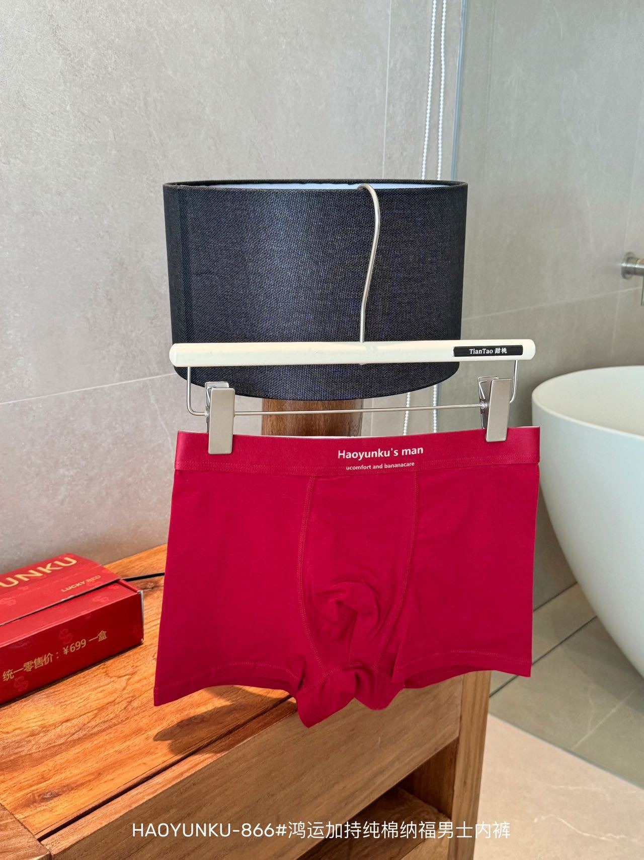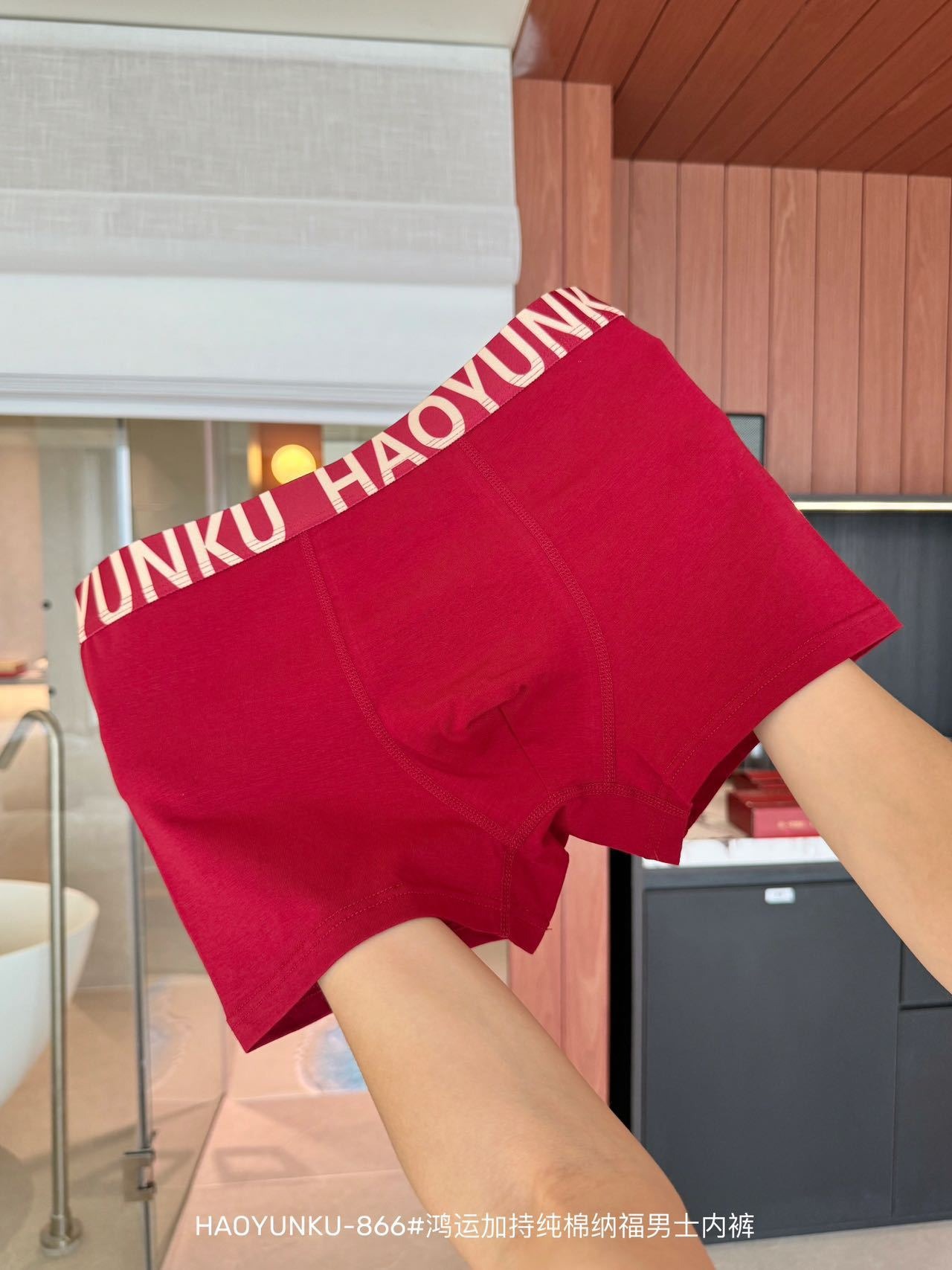 3条礼盒装【旺本命解水迎❗️鸿运加持顺风顺水】866#本命年喜庆鸿运大红纯棉男士内裤裸感透气运动青年大码平角裤。ja