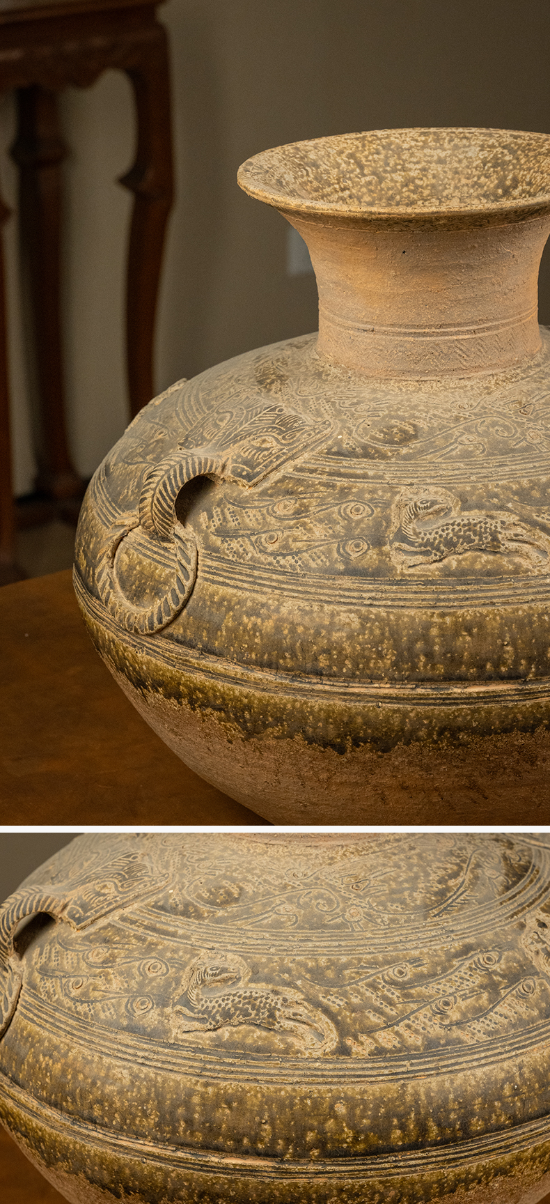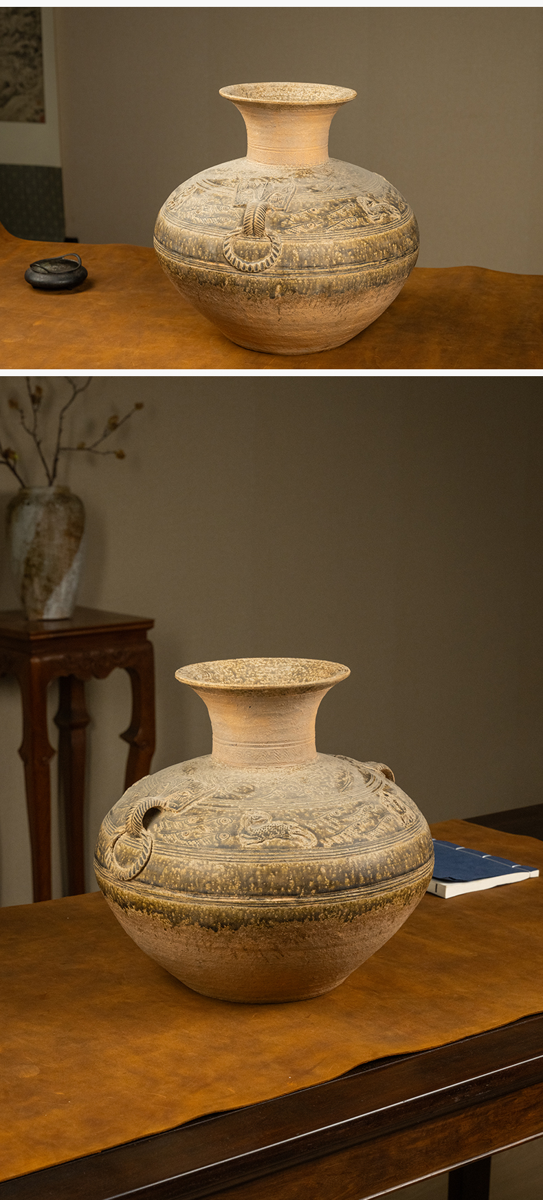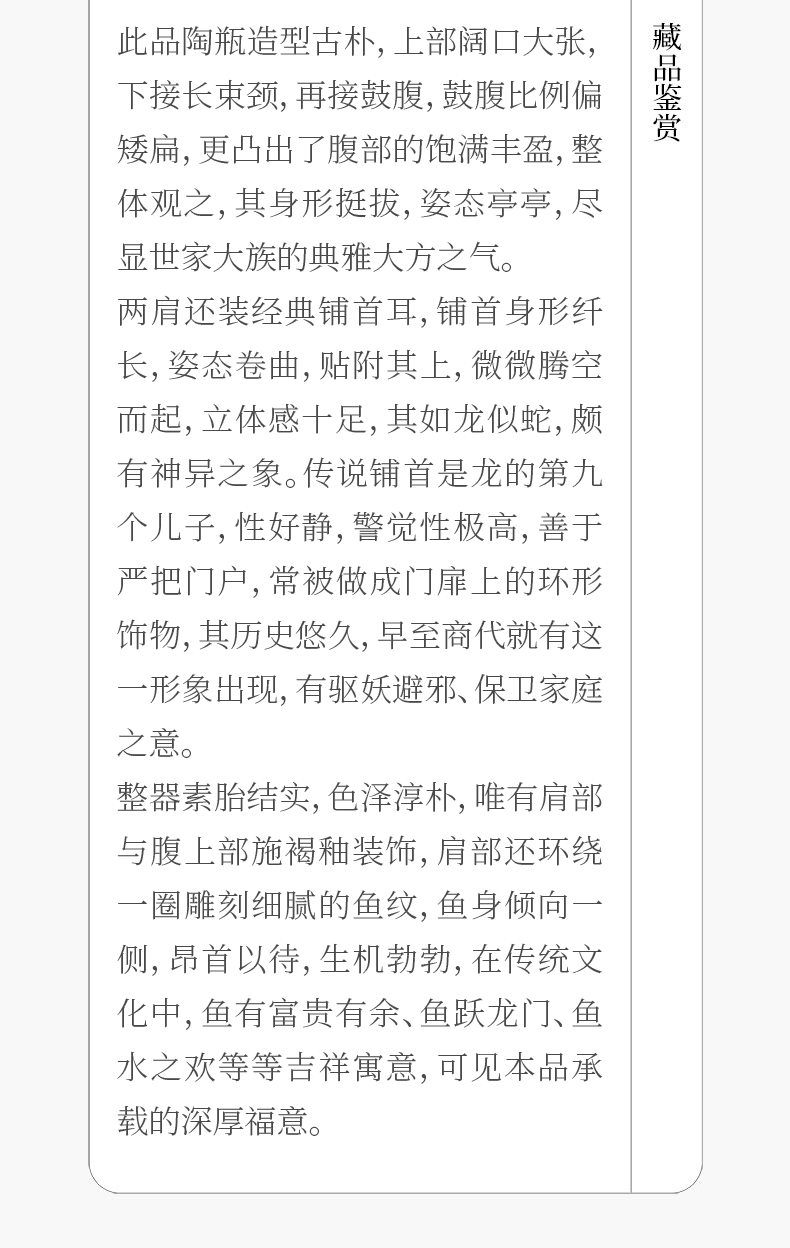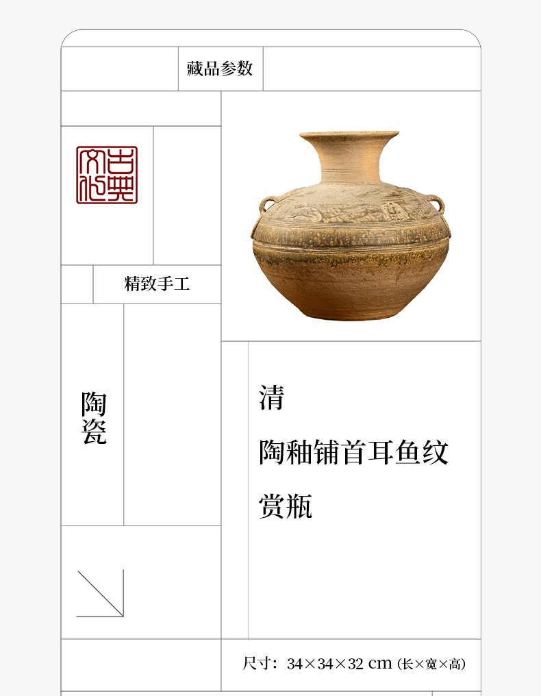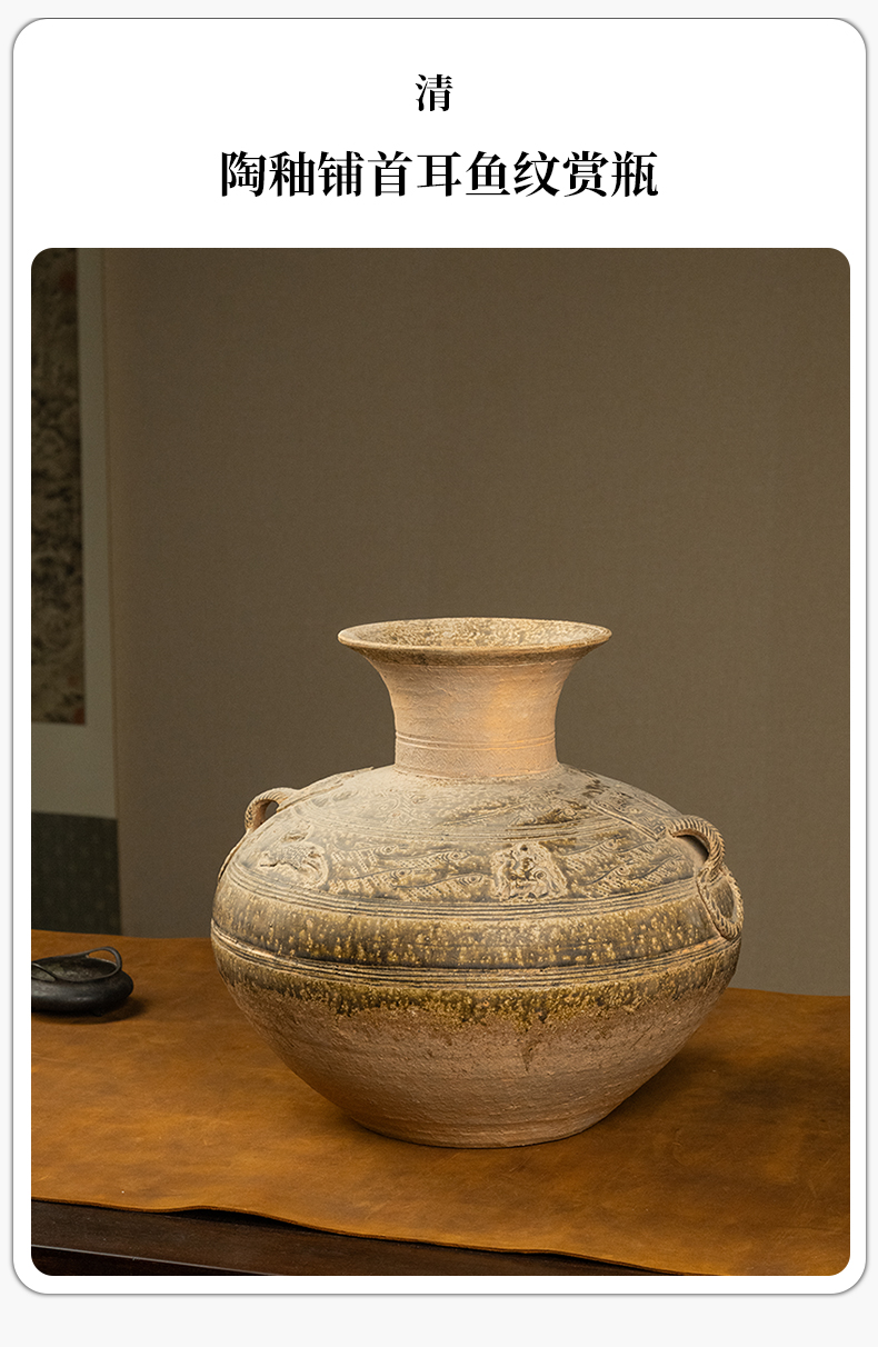 清 陶釉铺首耳鱼纹赏瓶