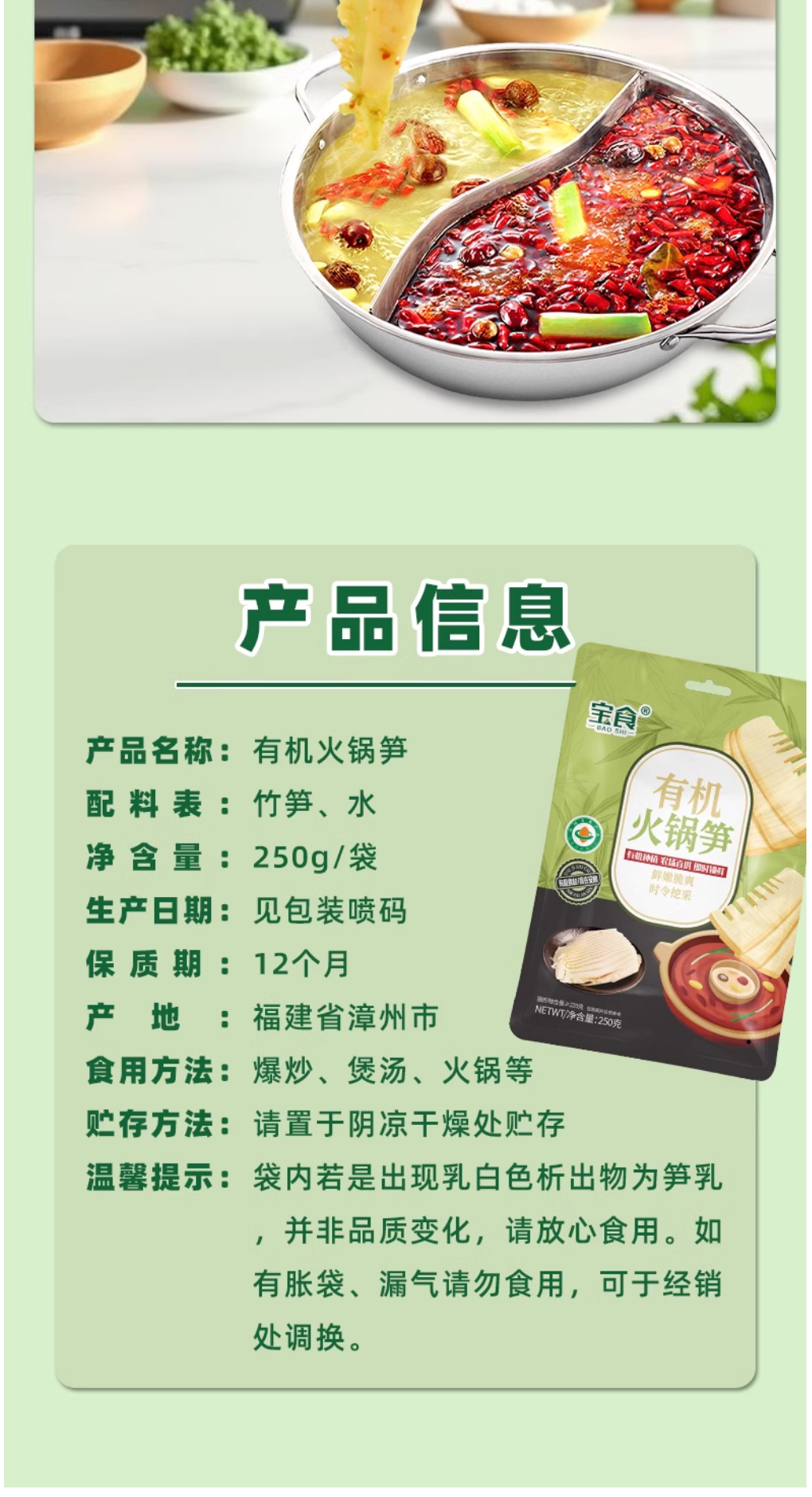 宝食有机火锅笋250g*1袋