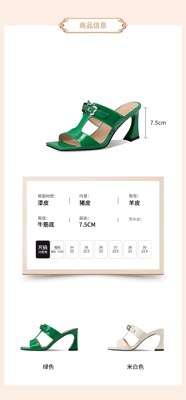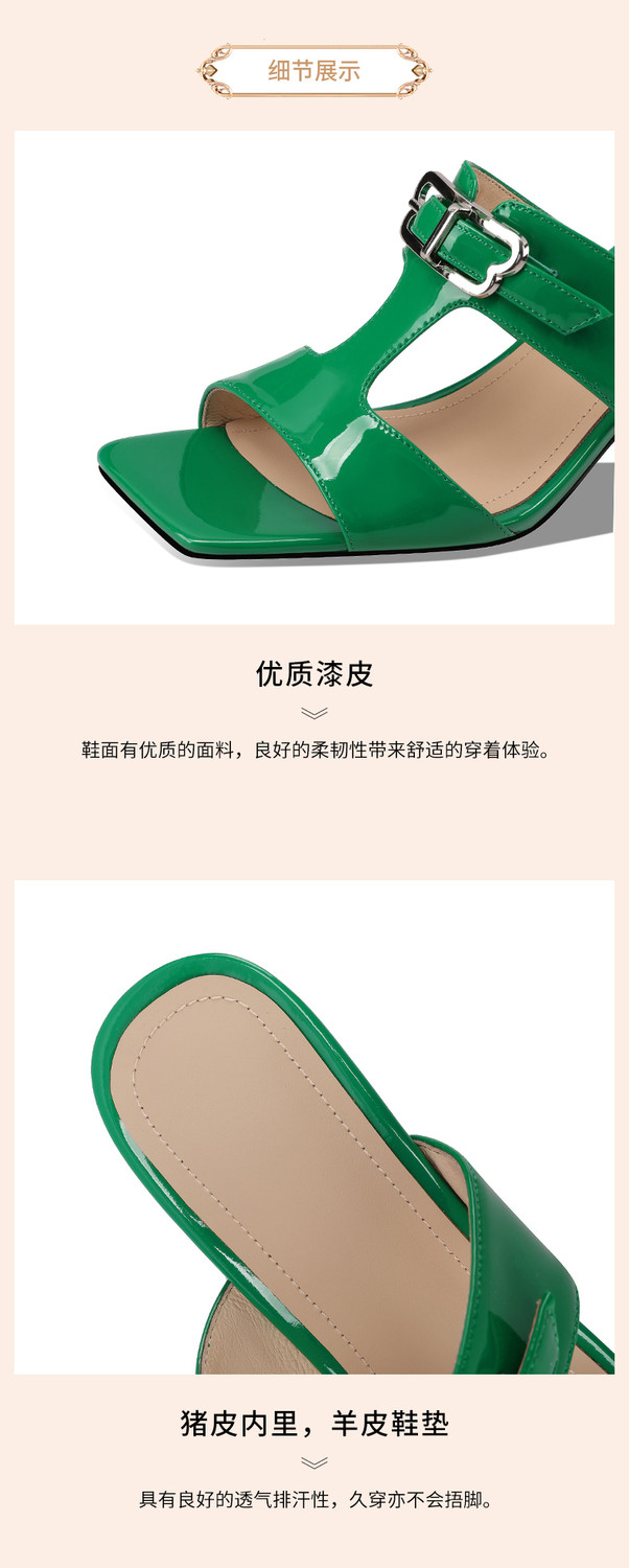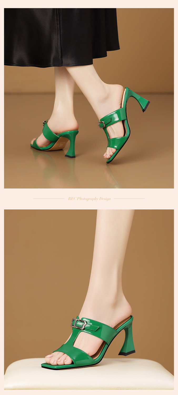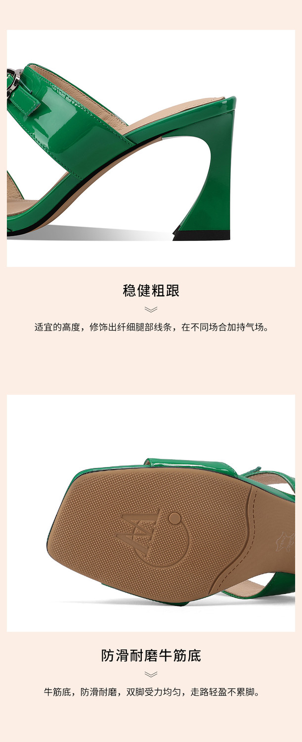 【预售5天】牛漆皮高跟拖鞋女夏外穿新款皮拖鱼嘴粗跟凉拖鞋HY&H3687