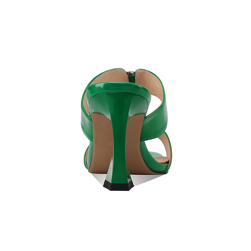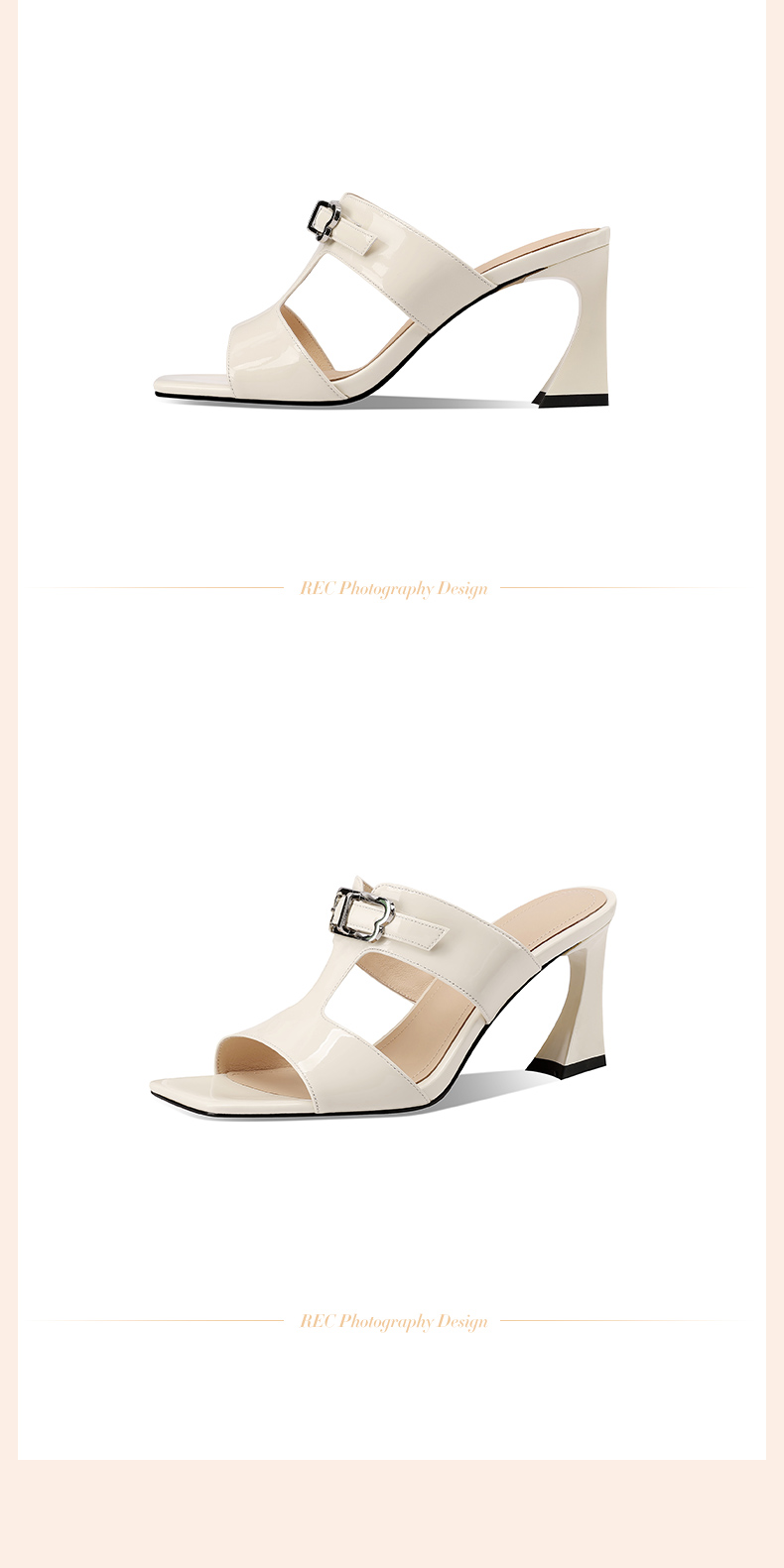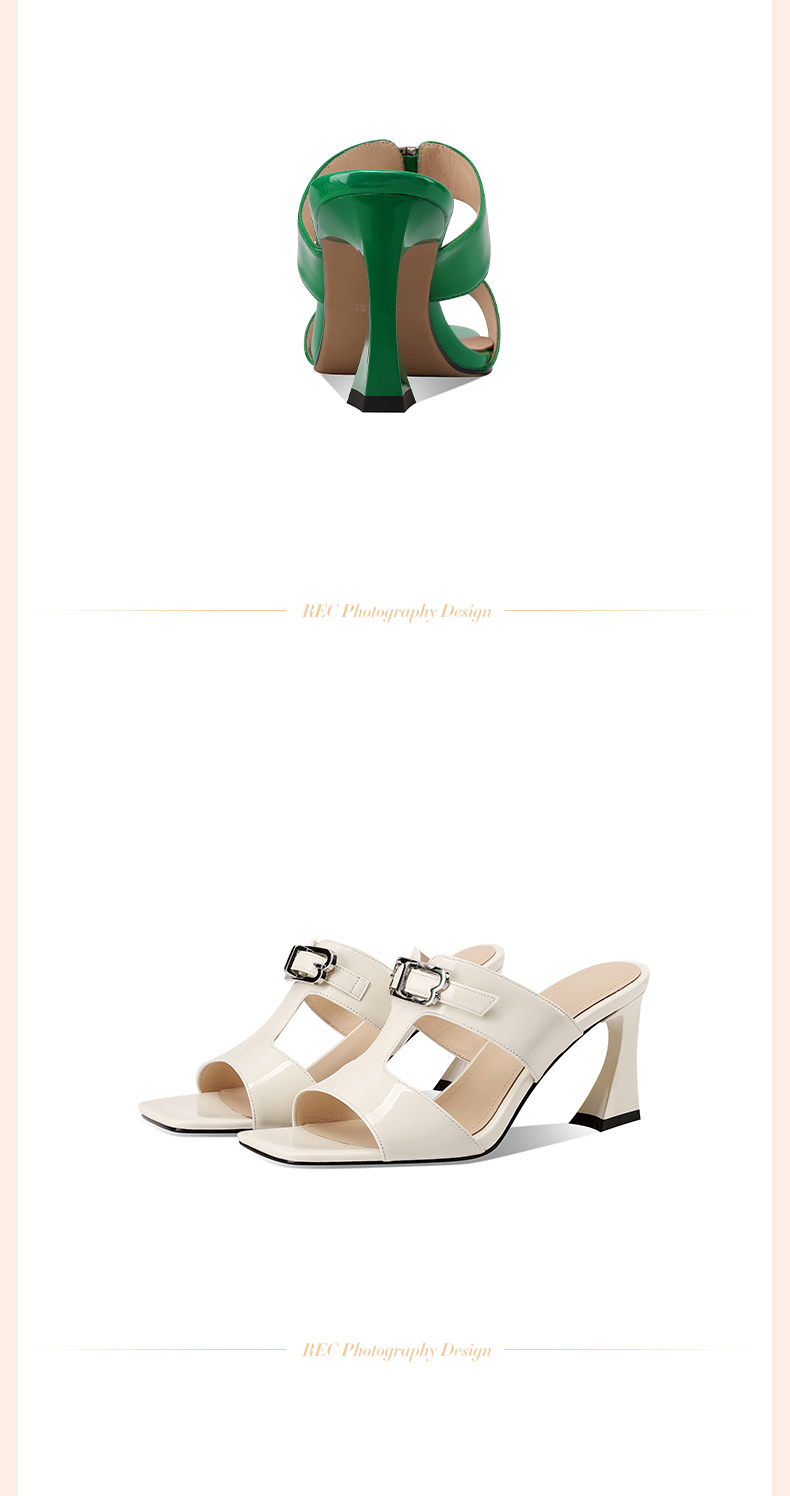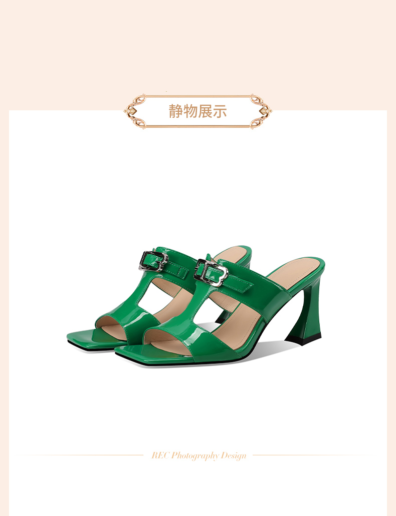 【预售5天】牛漆皮高跟拖鞋女夏外穿新款皮拖鱼嘴粗跟凉拖鞋HY&H3687