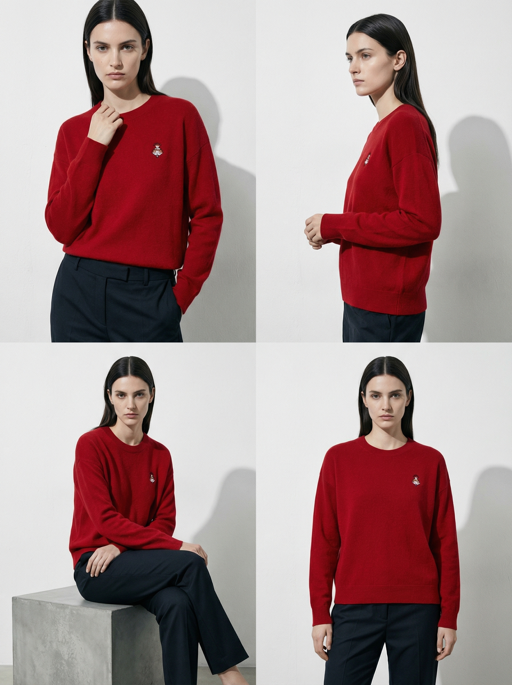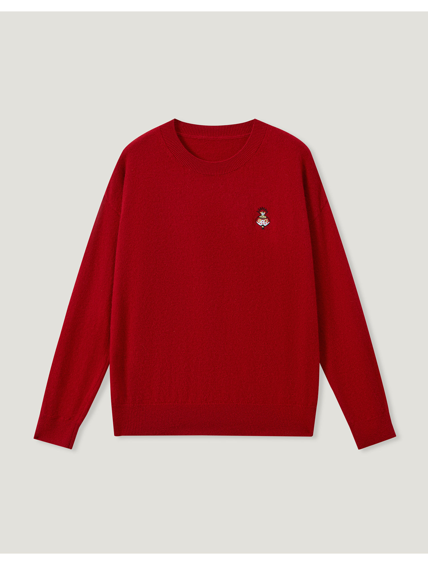 KINGDEER/KD秋冬新款女式圆领刺绣长袖羊绒衫L805554全部红色款鹿王 红色