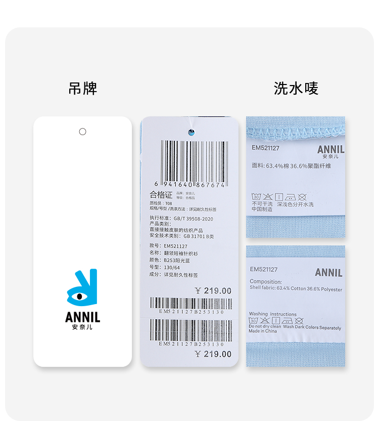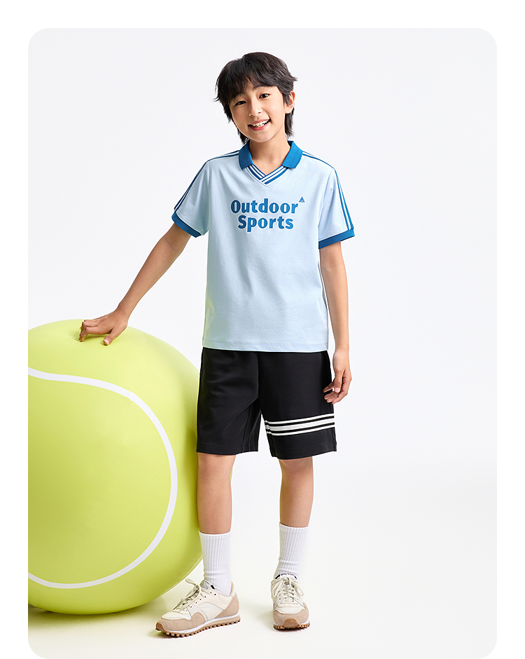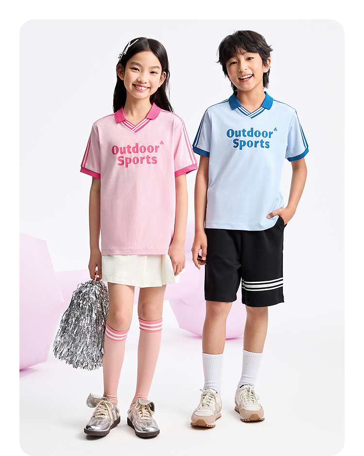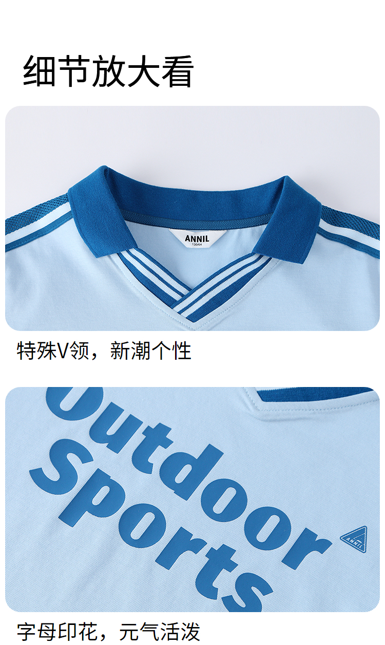 男女童SORONA凉感翻领短袖针织衫夏季新款安奈儿童装EM521127