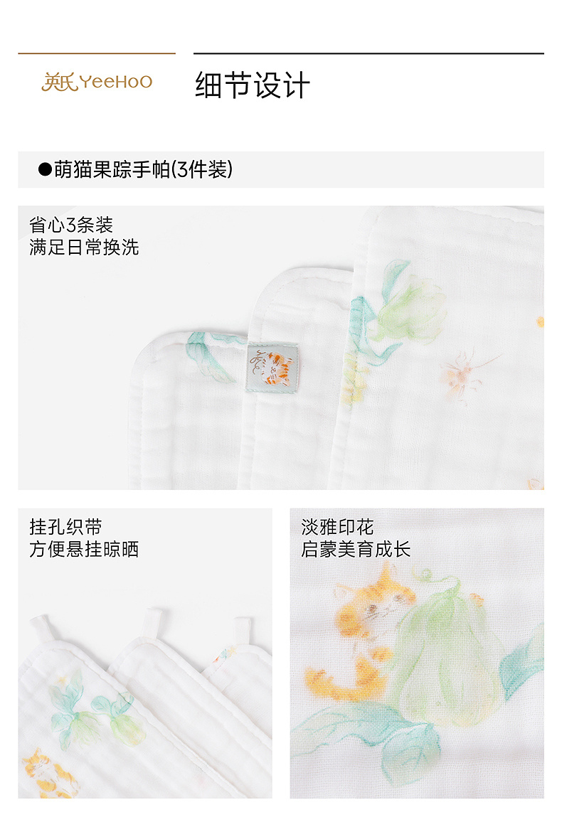 【商场同款】英氏婴儿方巾新生儿纯棉手帕抗菌3条装汗巾2条装新