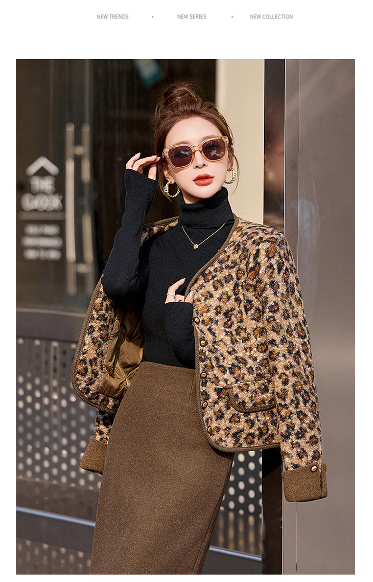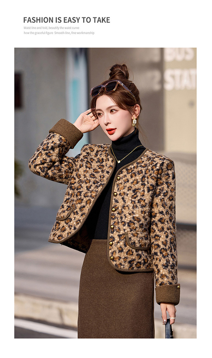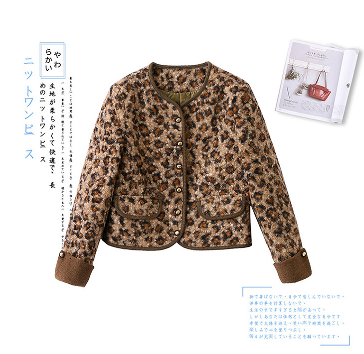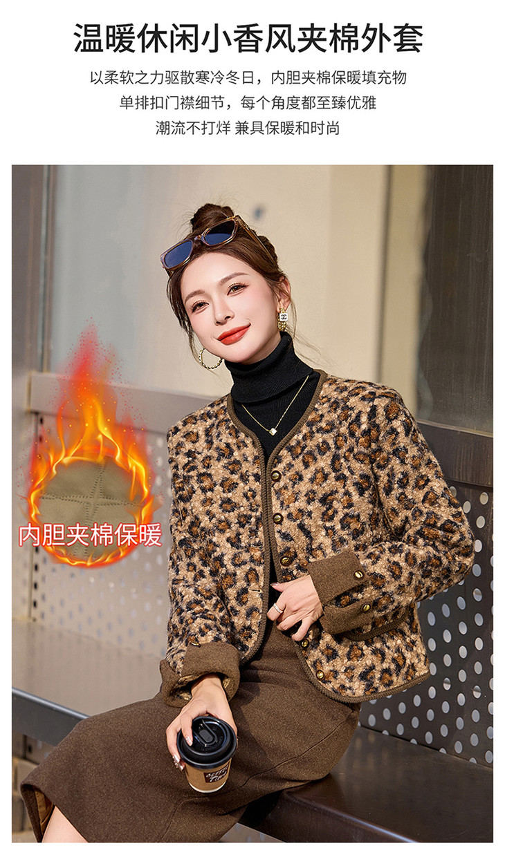 圆领豹纹夹棉,短款上衣时尚外套棉衣HR-YBX8806