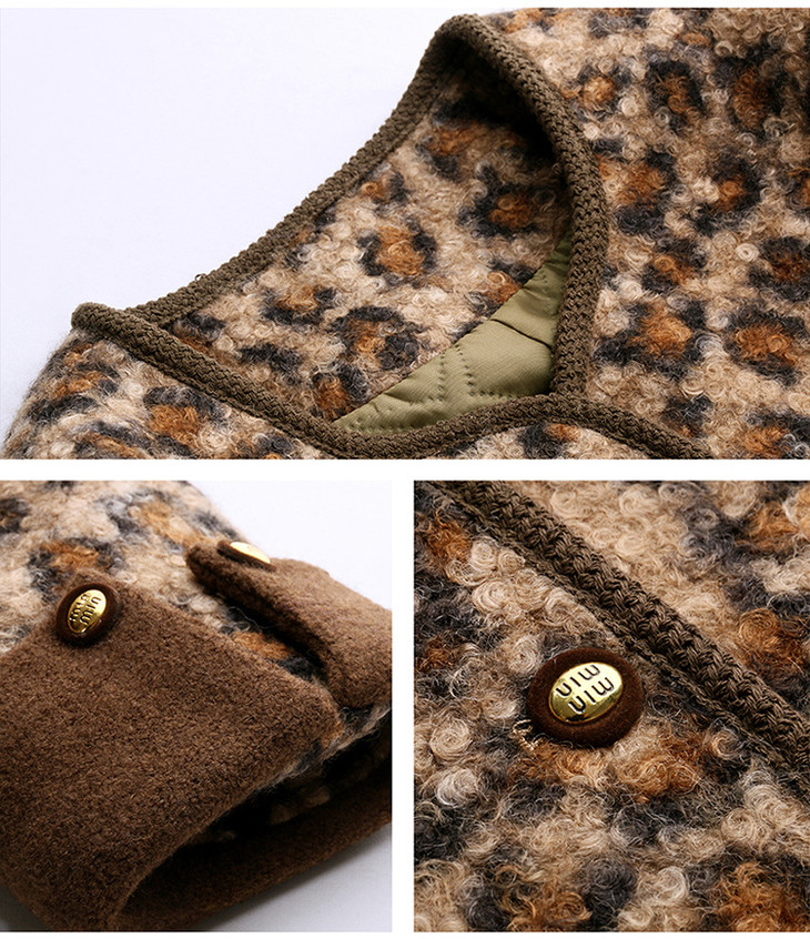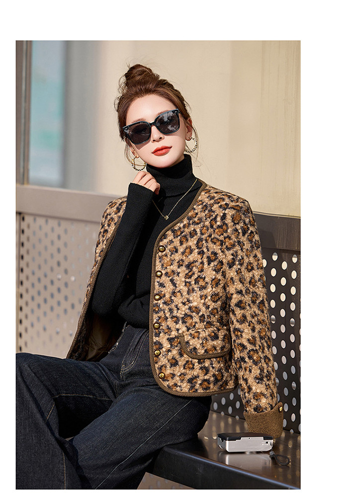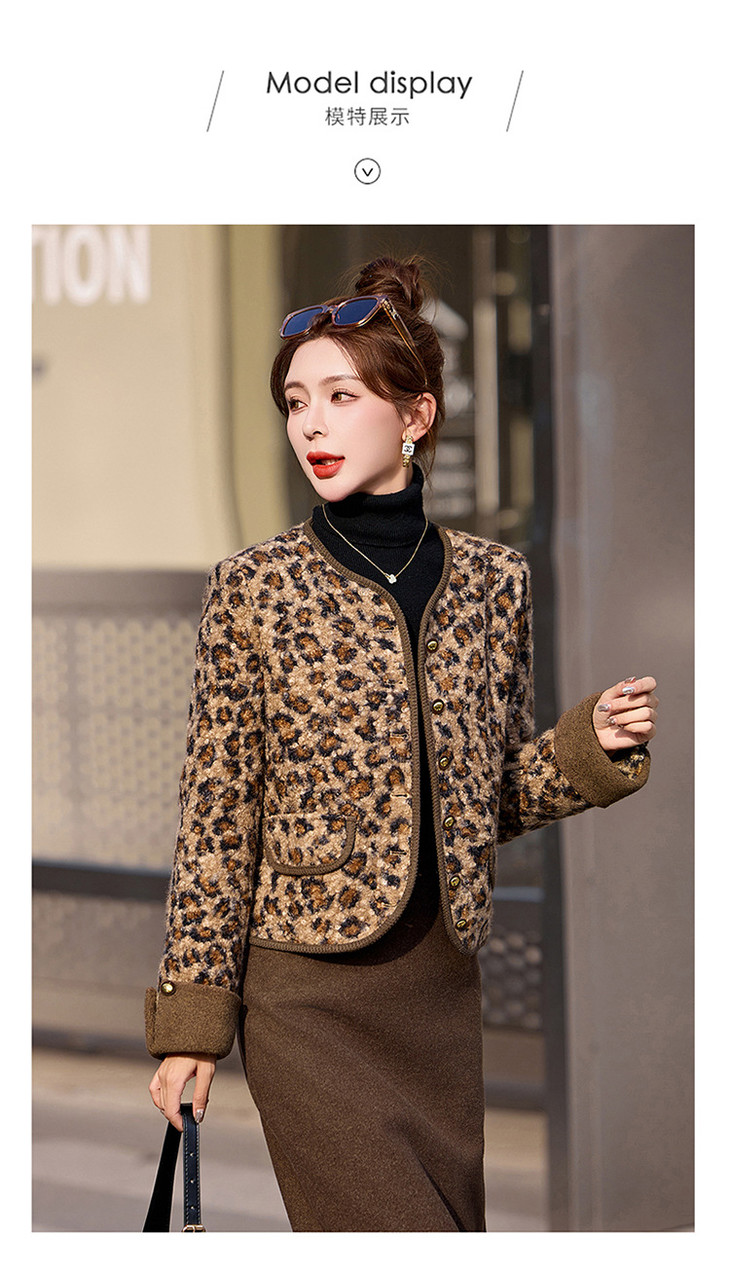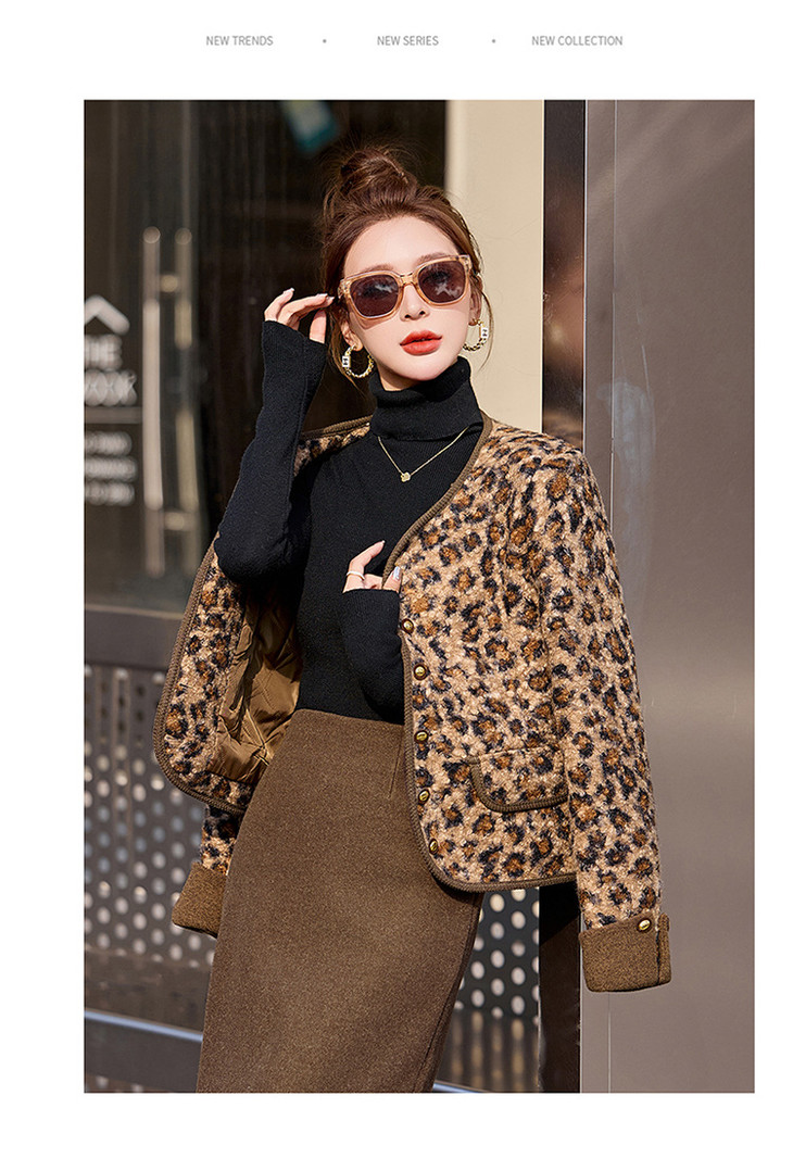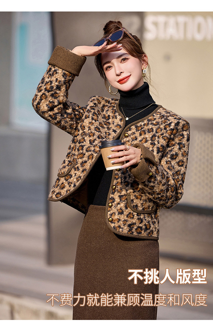 圆领豹纹夹棉,短款上衣时尚外套棉衣HR-YBX8806