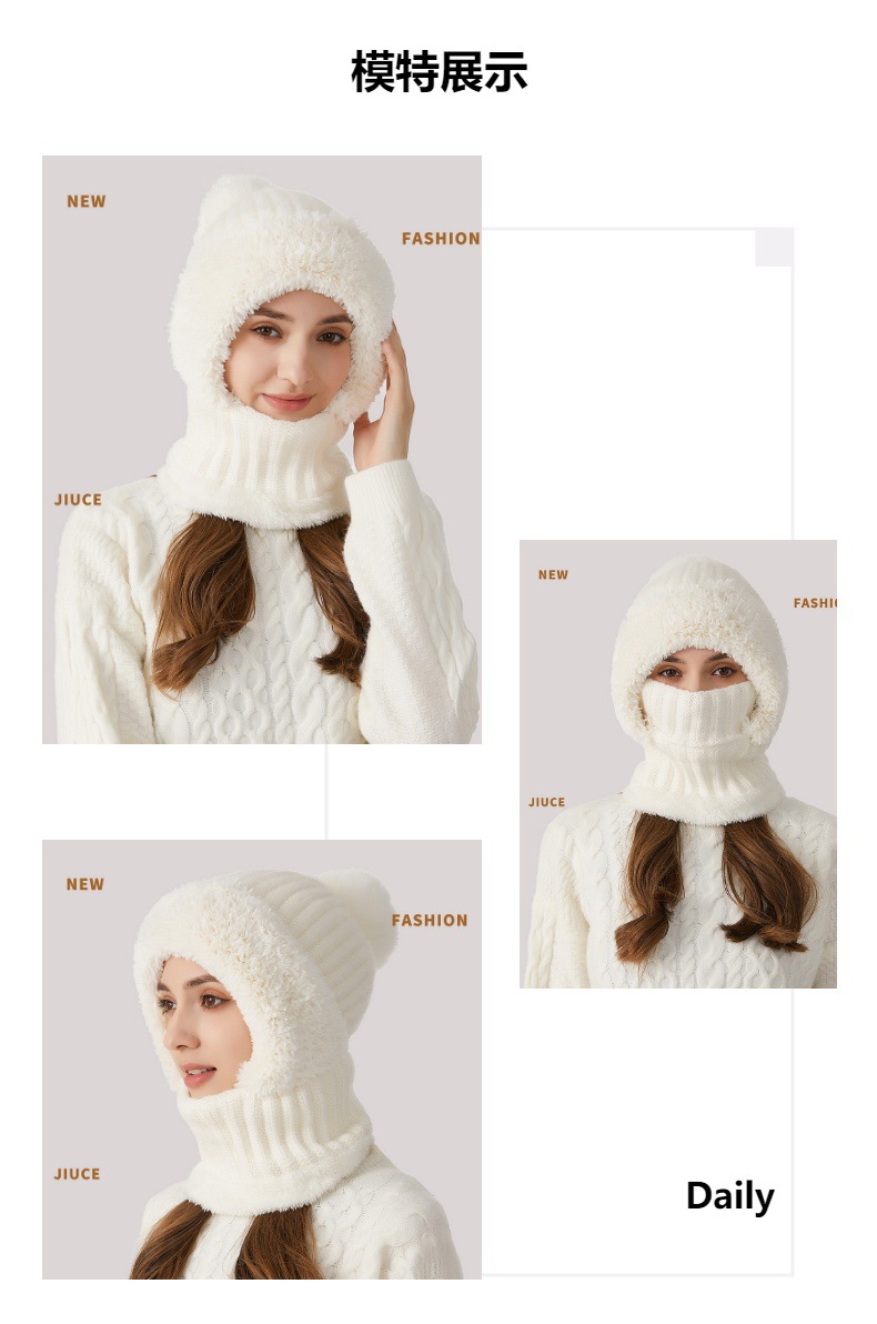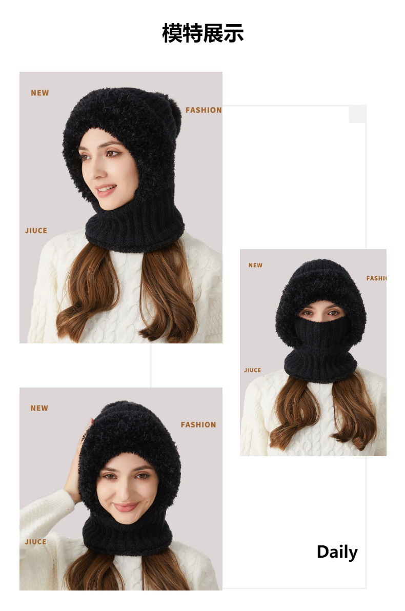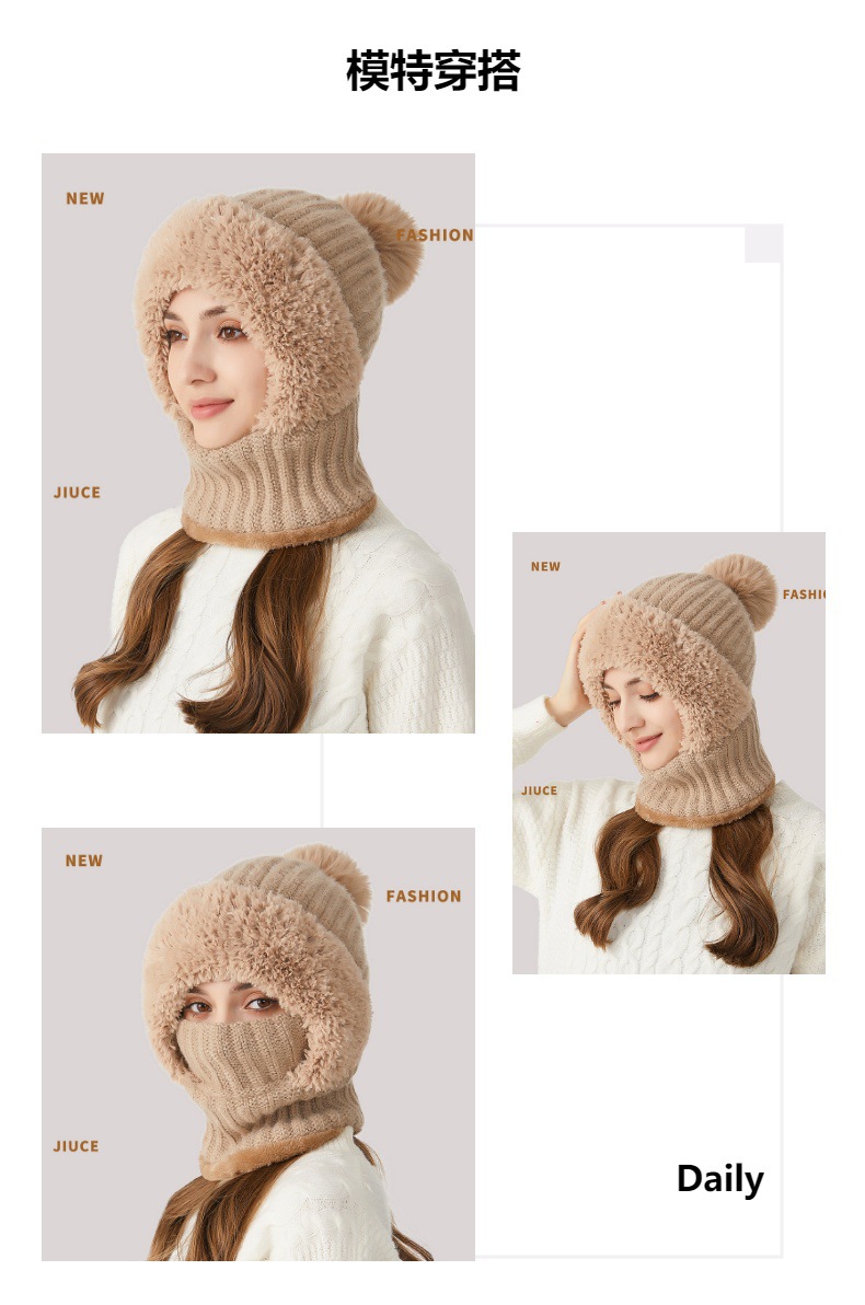 针织帽加厚加绒围脖口罩连体保暖帽JC2758
