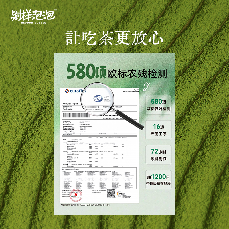 ✅580项欧盟农残检测、16道严密工序、72小时锁鲜制作、超1200目茶道级品质