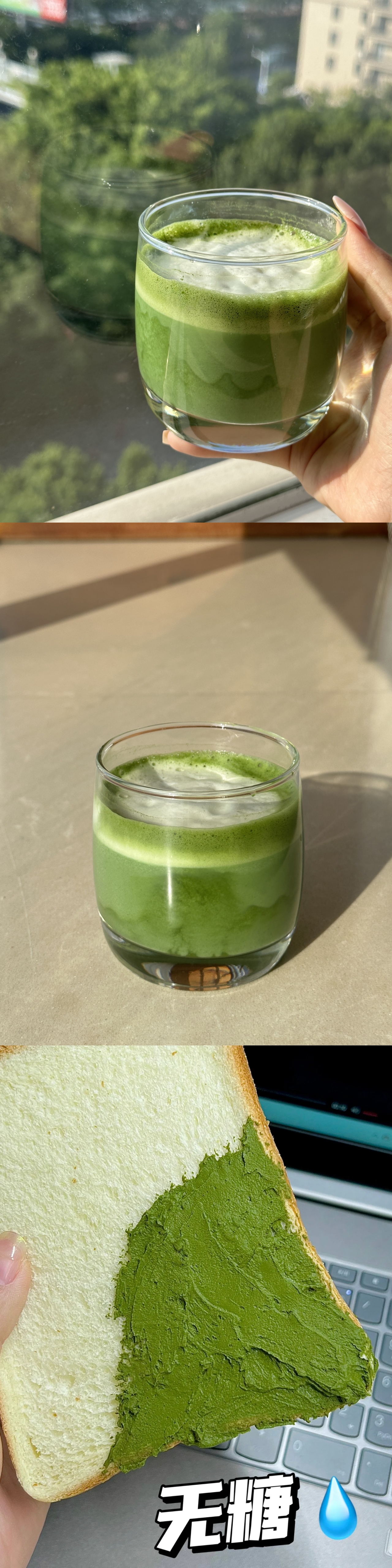 用抹茶粉➕牛奶自制一杯抹茶奶绿了!!早餐两个搭在一起,让我直接从l码到s码!