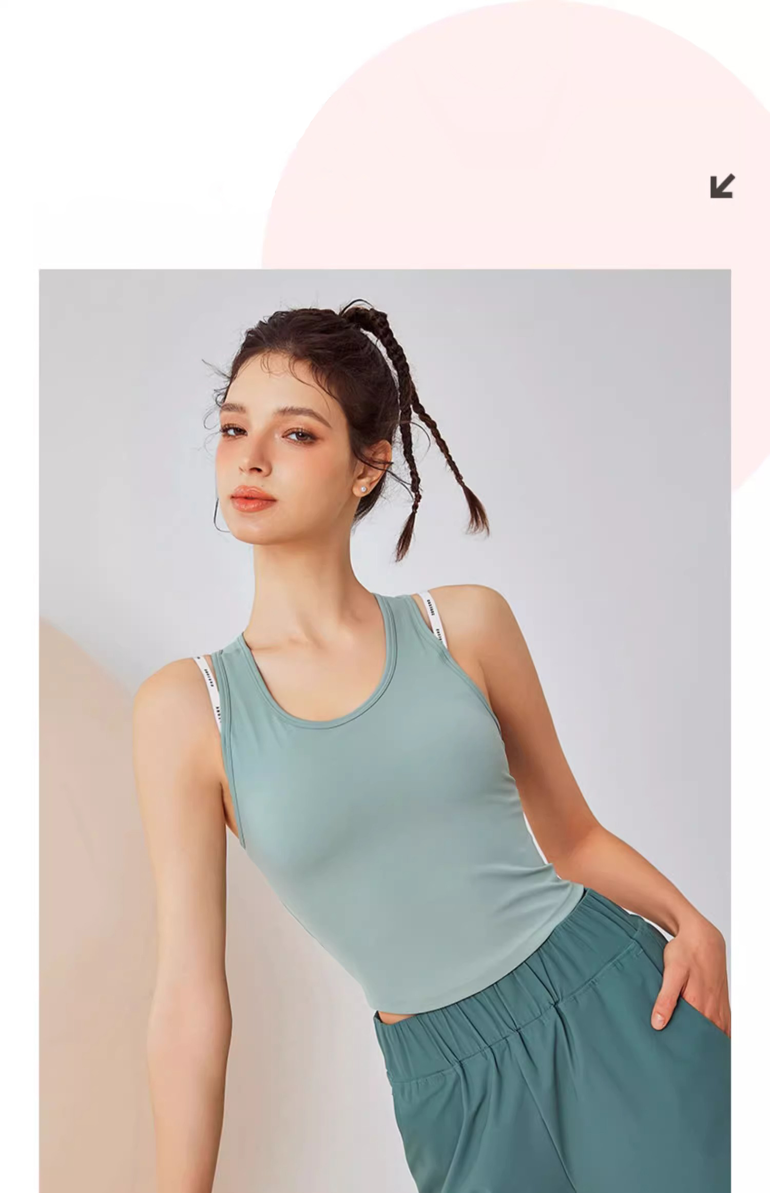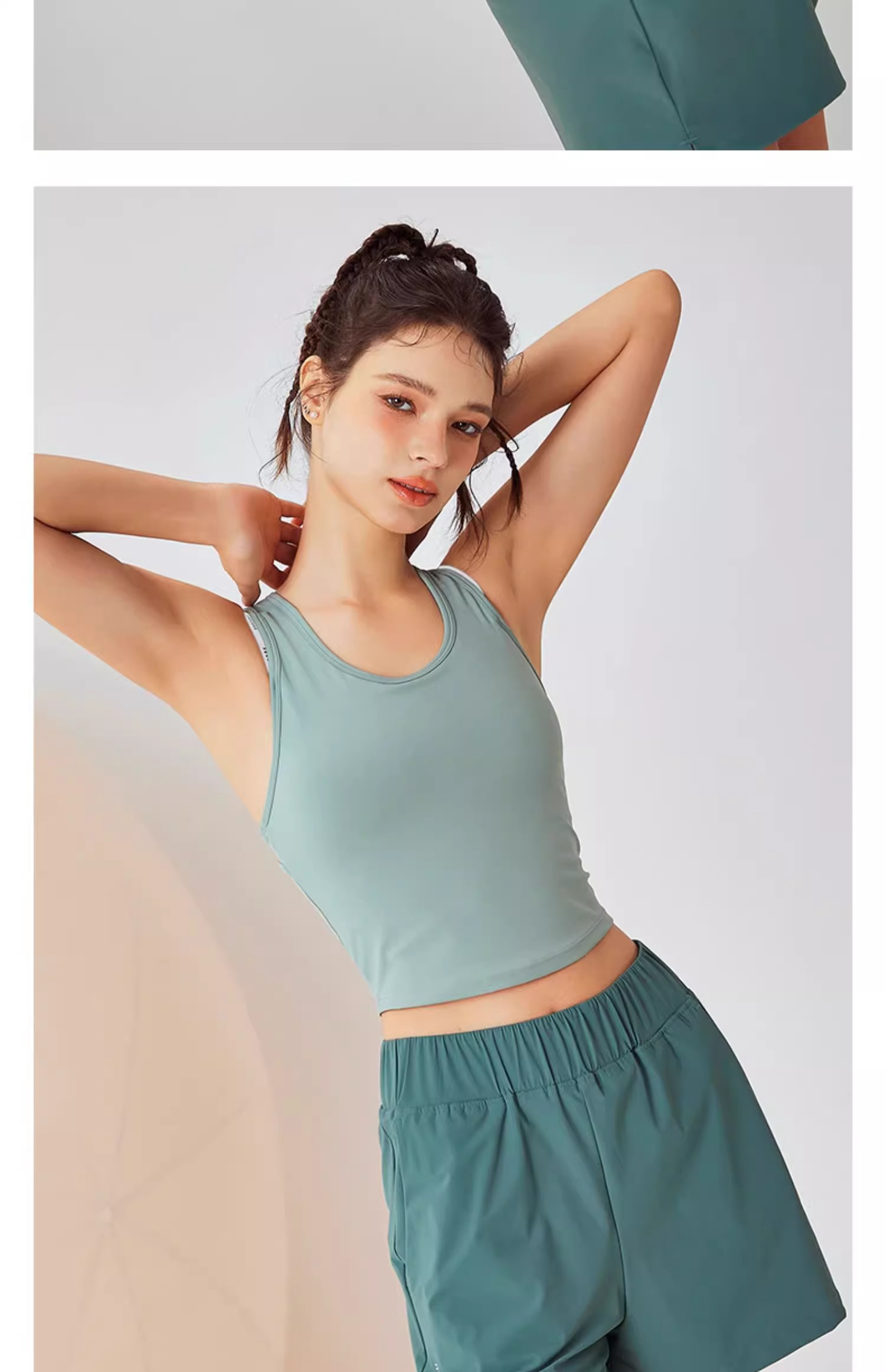 【3~5天发货】跃牌【美度空间】系列 冰薄荷春夏裸感运动文胸可拆卸无袖U领瑜伽背心镂空运动内衣ADWX41027