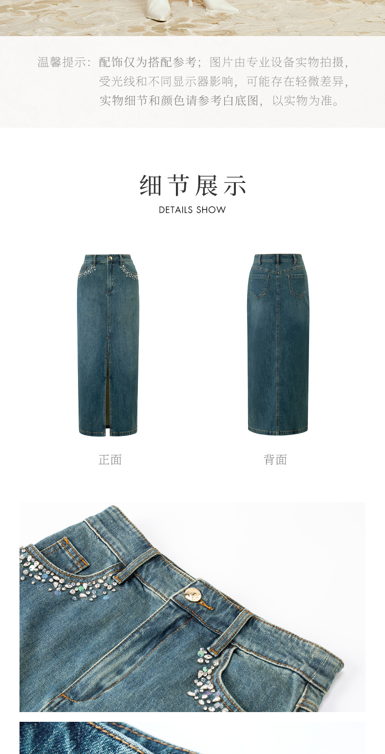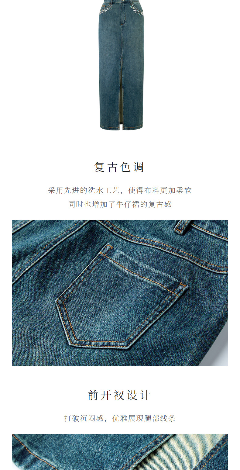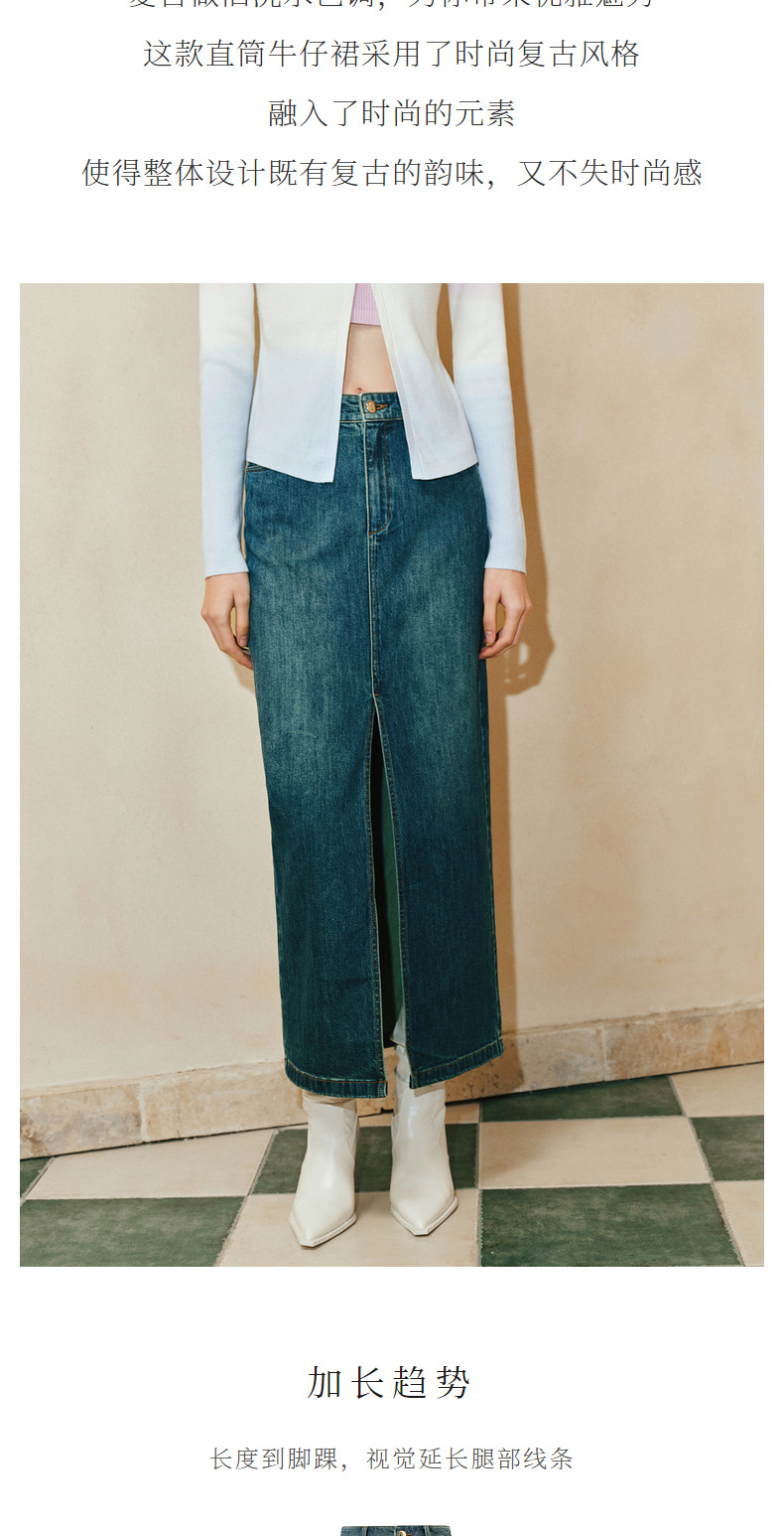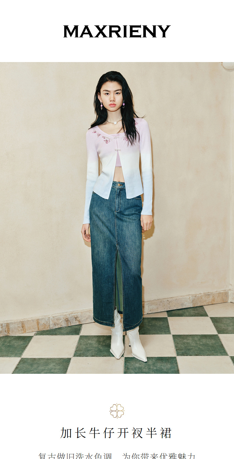 【东方玉兰-商场同款】MAXRIENY精致复古感开衩牛仔半裙2024春款(货号:MC85SK039)