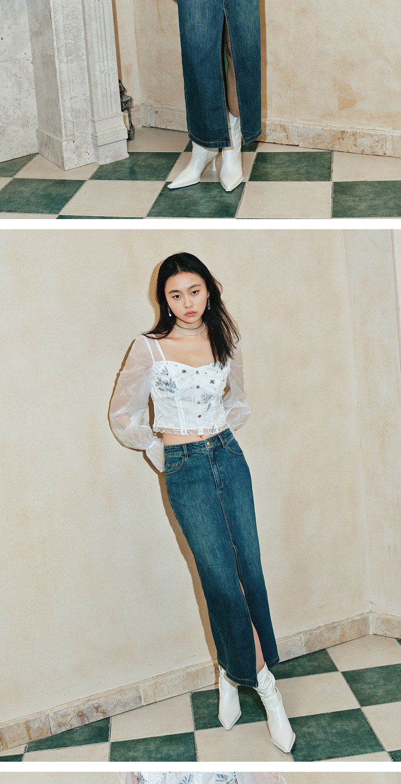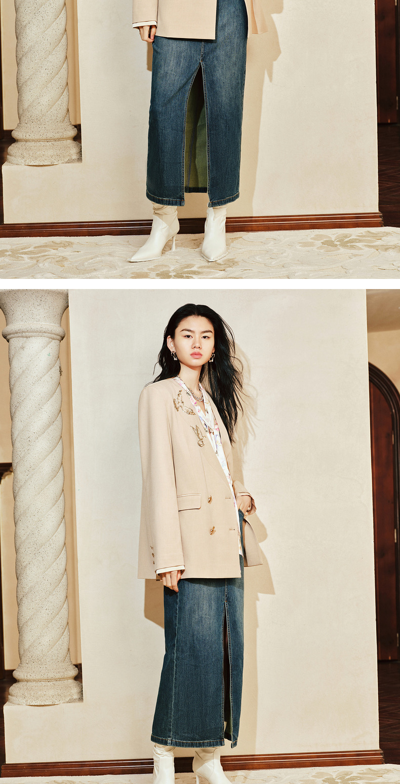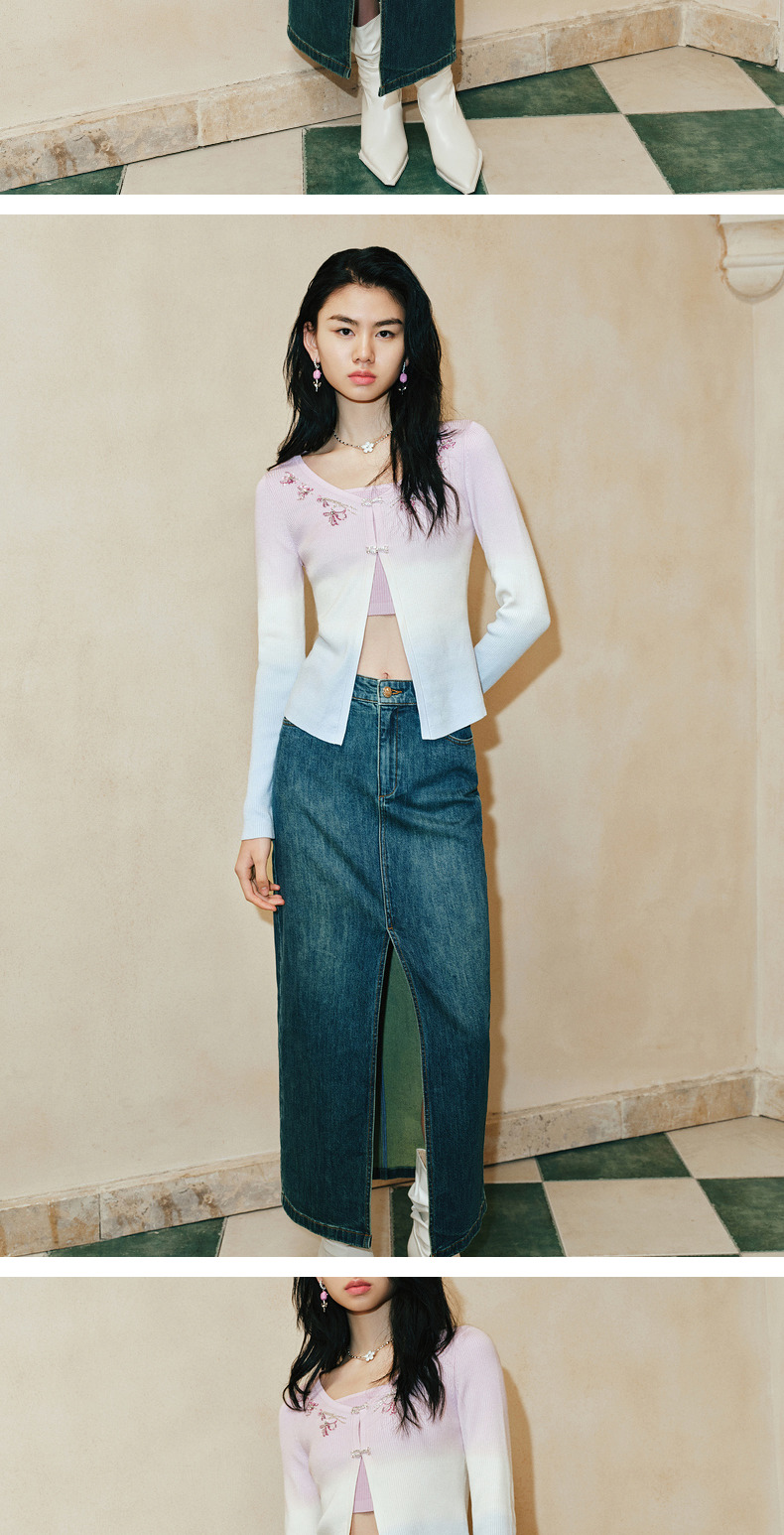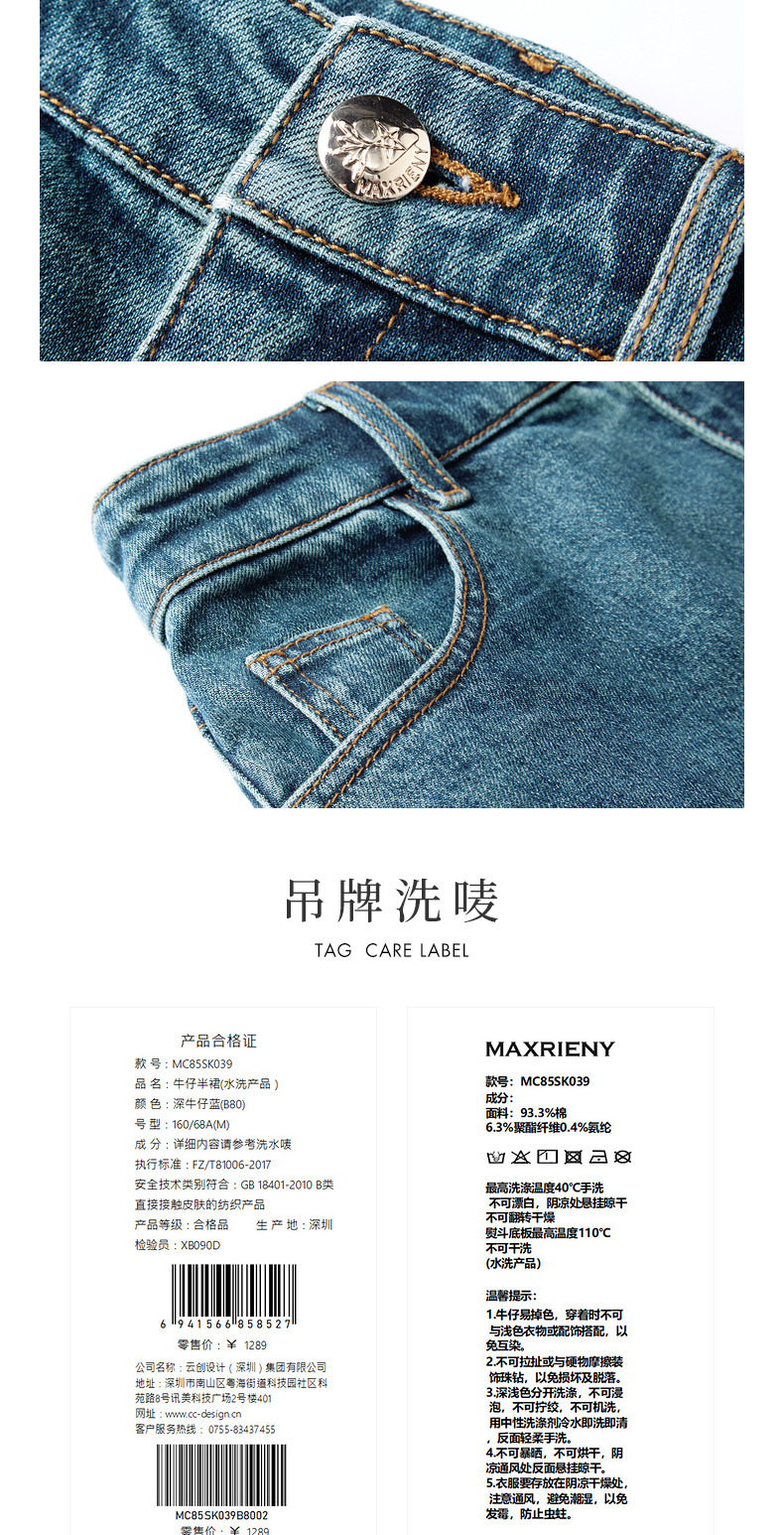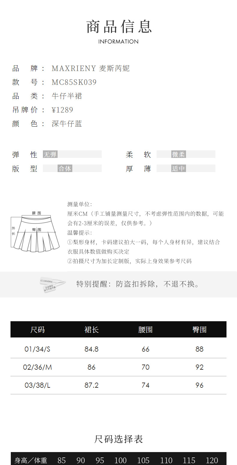 【东方玉兰-商场同款】MAXRIENY精致复古感开衩牛仔半裙2024春款(货号:MC85SK039)