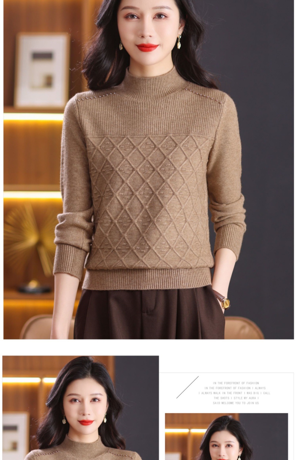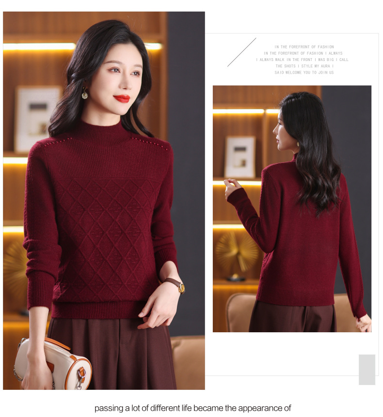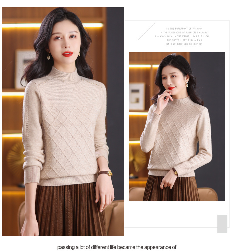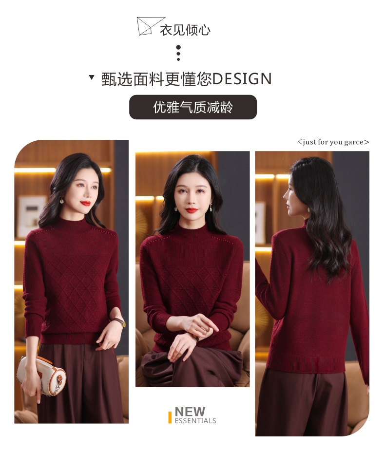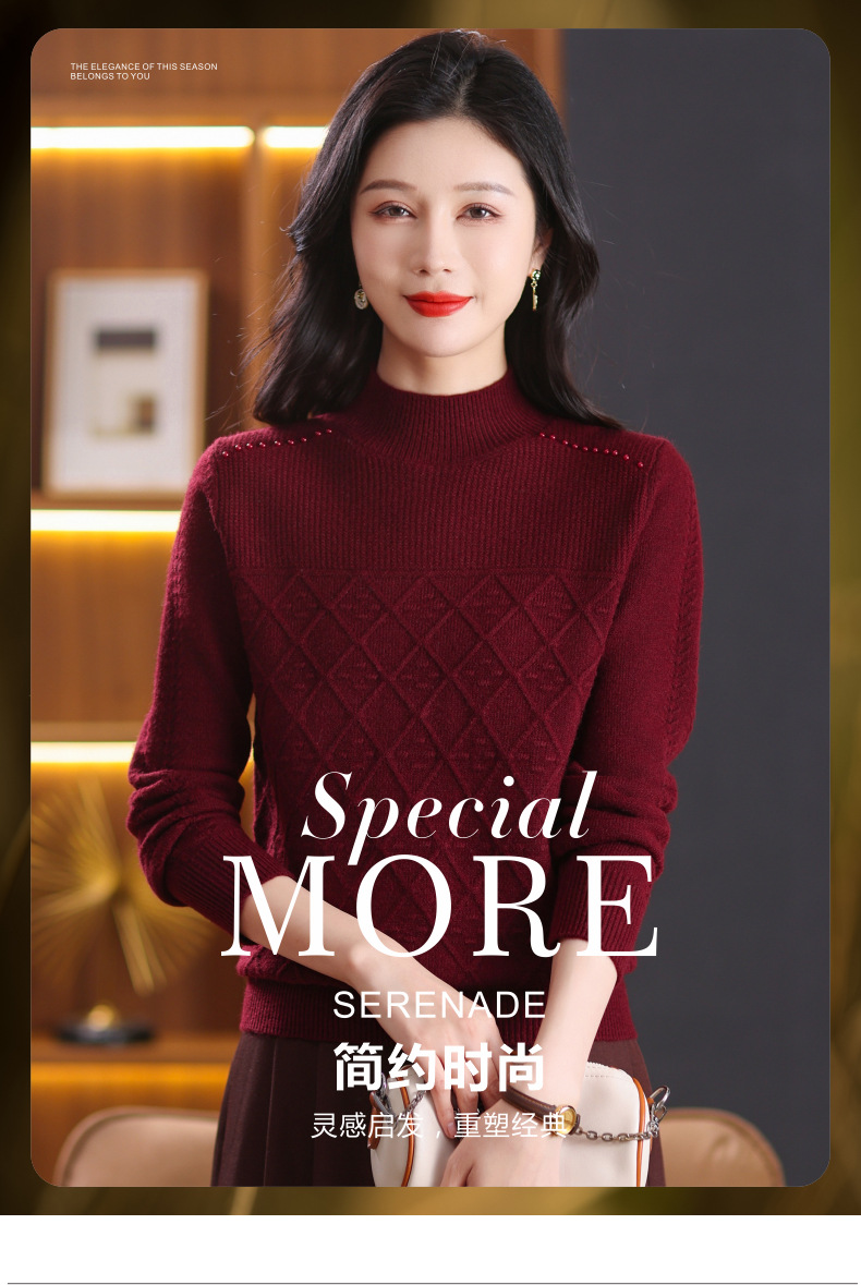 CC-89-3802秋冬季新款简约百搭设计感羊毛半高领纯色毛衣内搭叠穿上衣