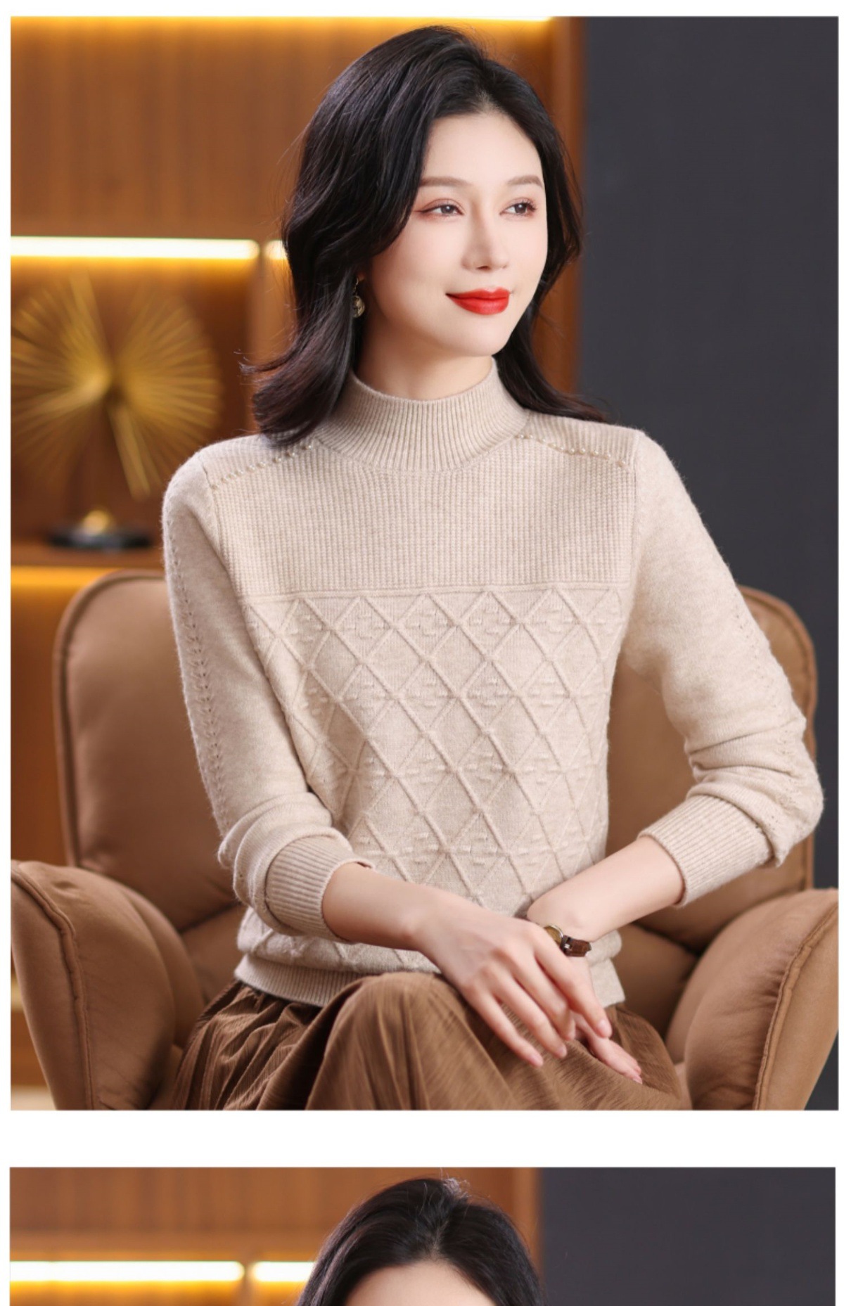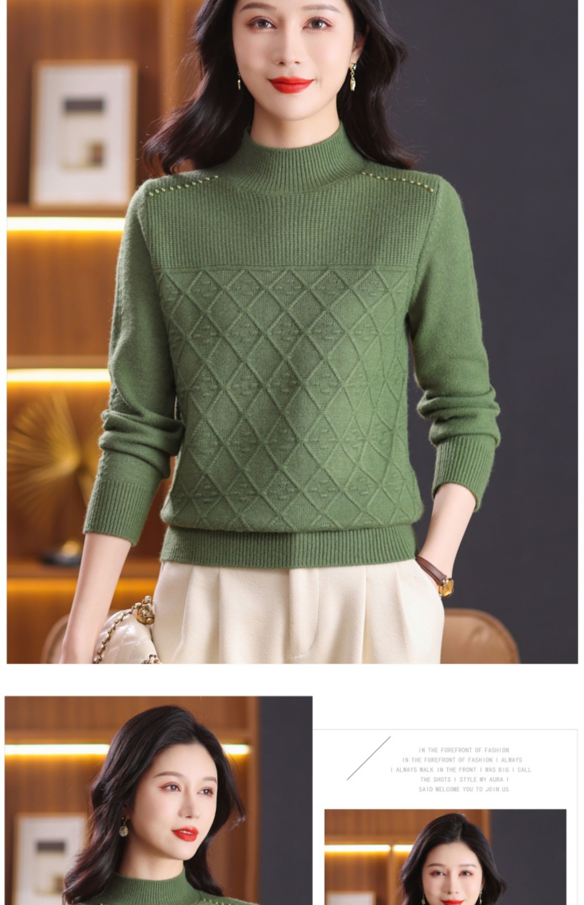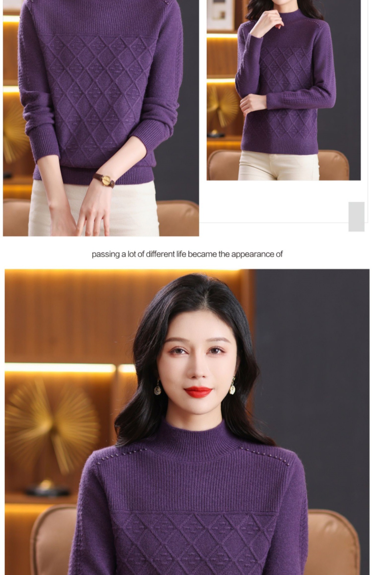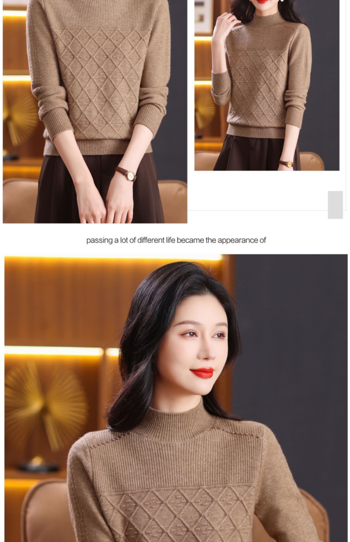 CC-89-3802秋冬季新款简约百搭设计感羊毛半高领纯色毛衣内搭叠穿上衣