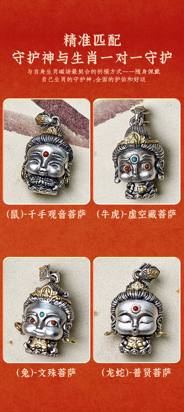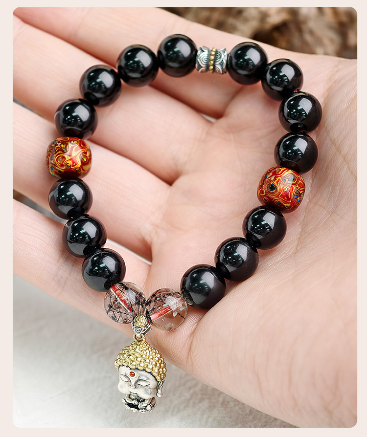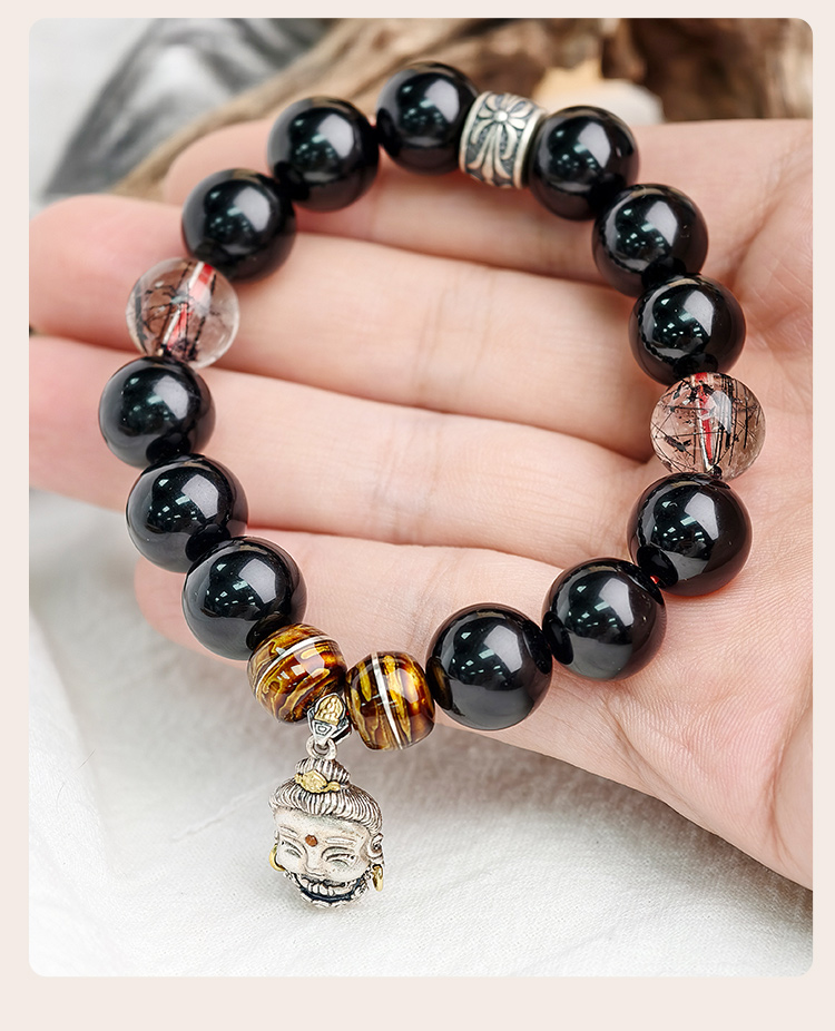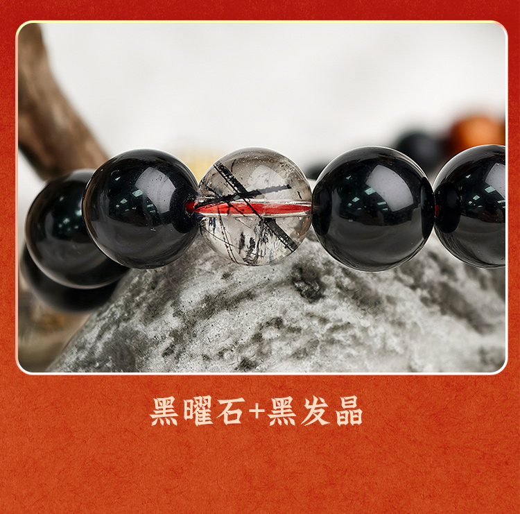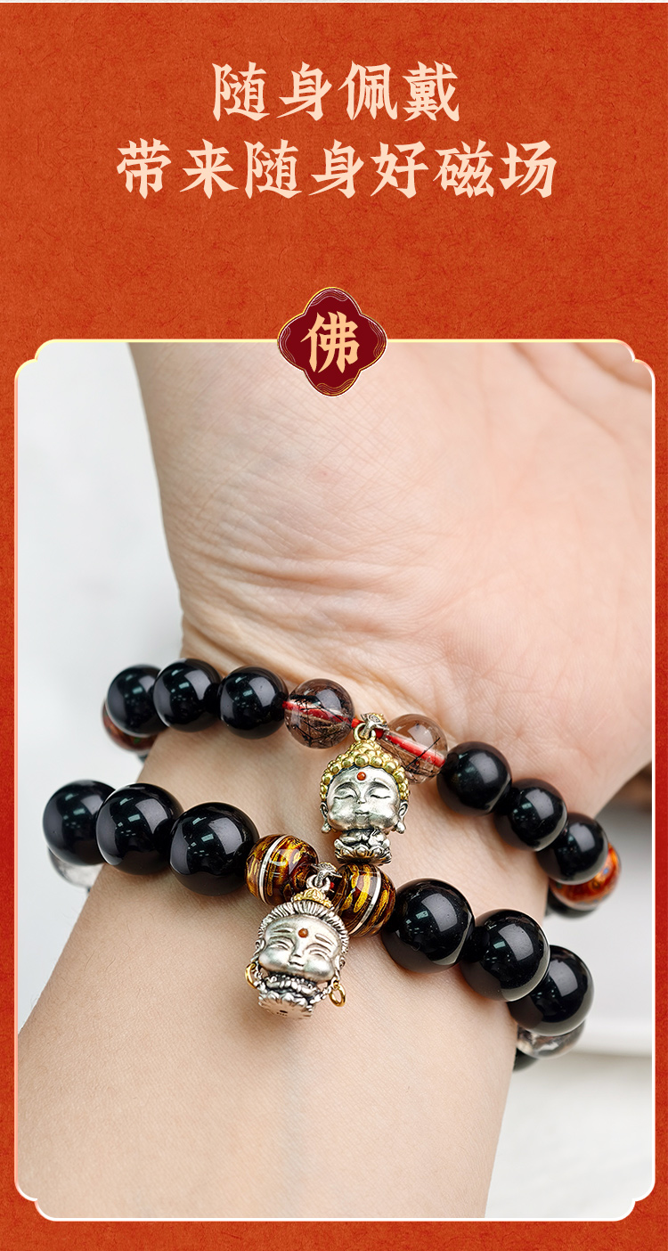 易祈吉祥黑曜石十二生肖守护神手串工艺八大守护神S925银男女款黑发晶手链