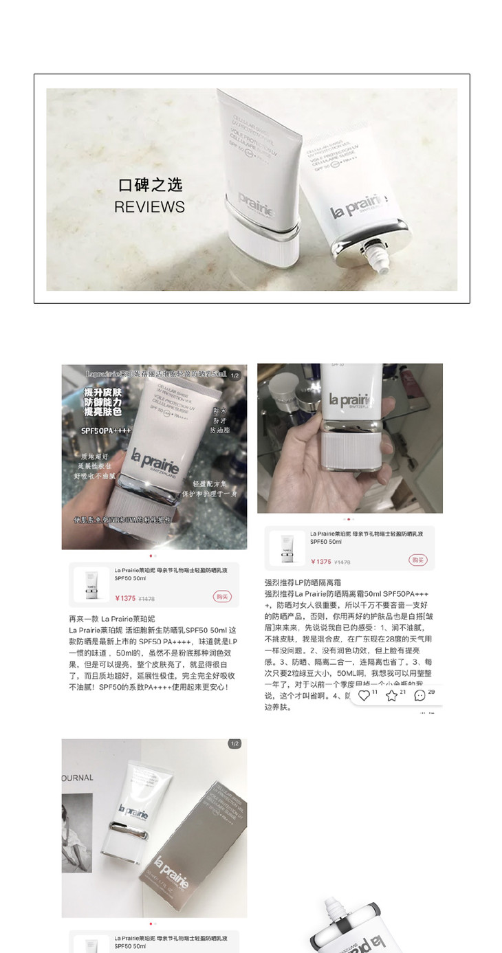 莱伯妮La Prairie莱珀妮蓓丽瑞士轻盈防晒霜乳液SPF50 PA+++