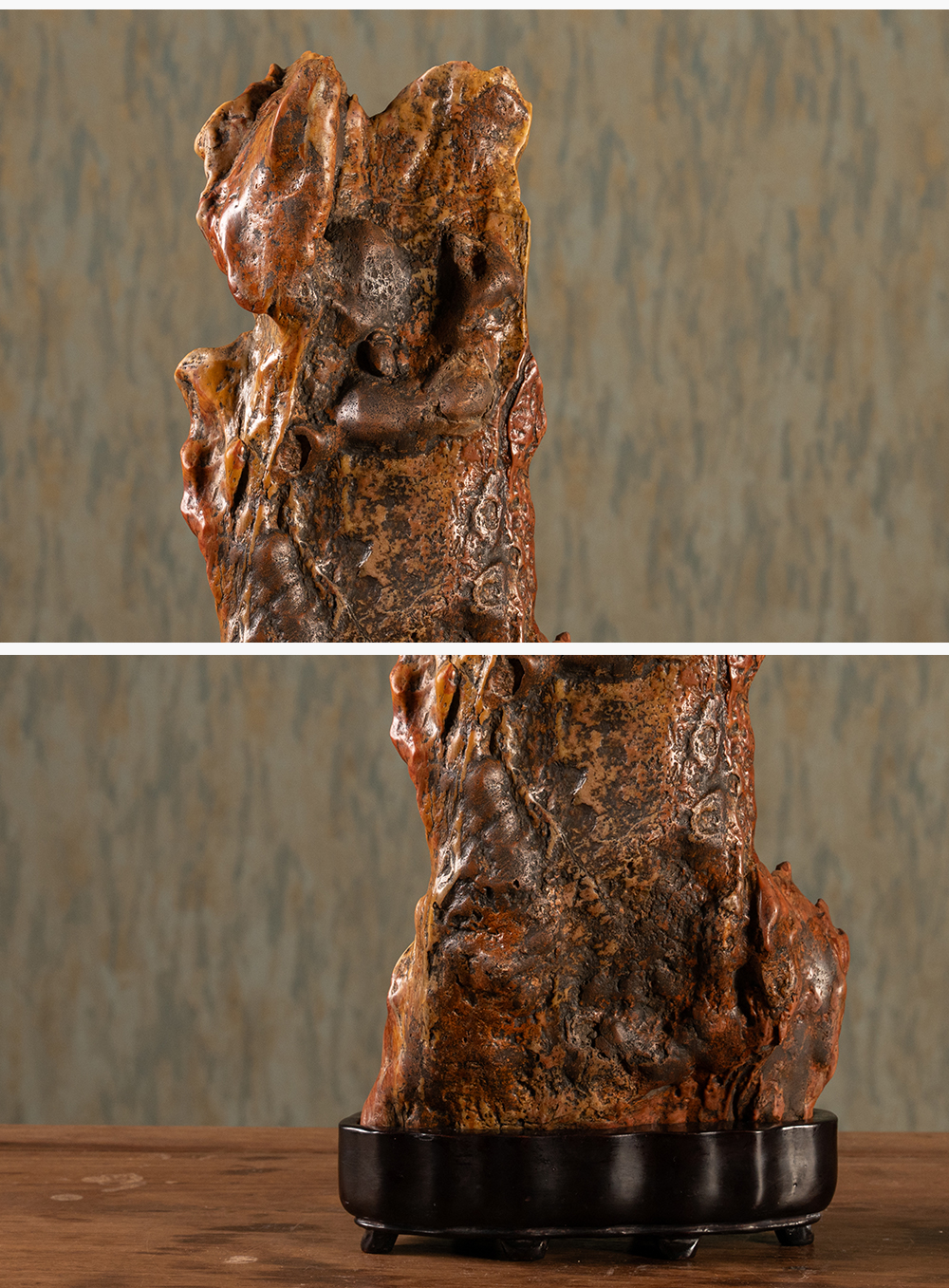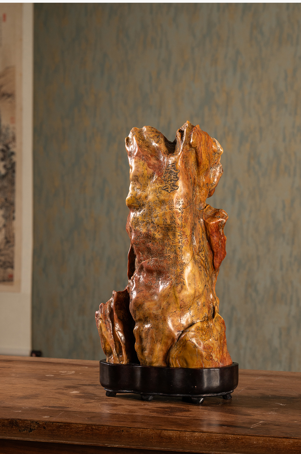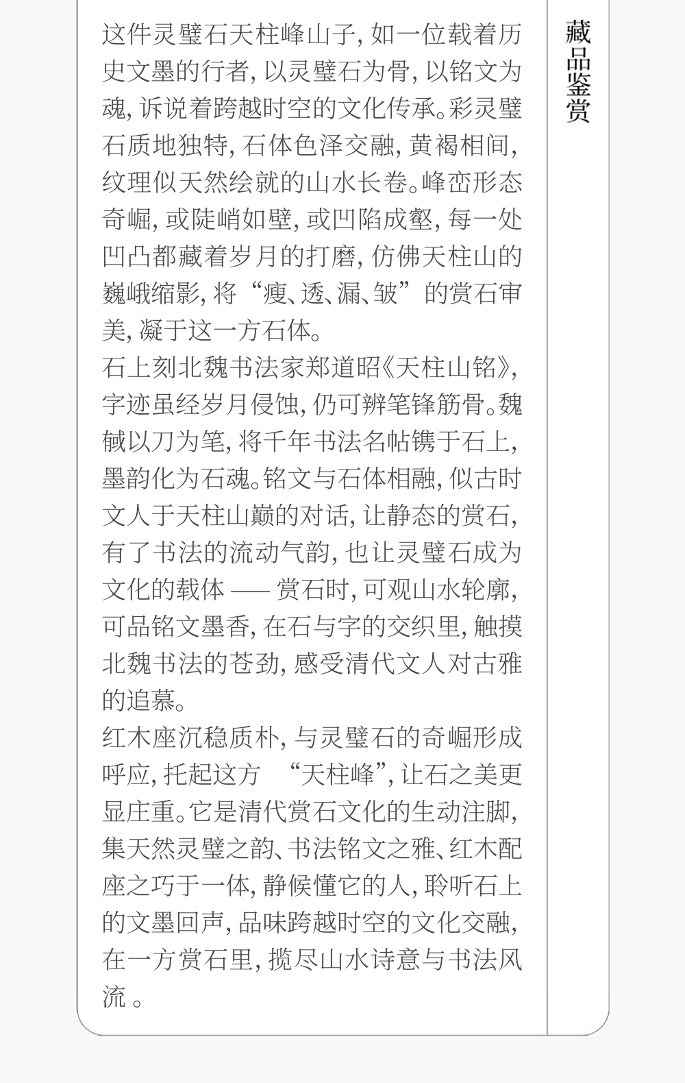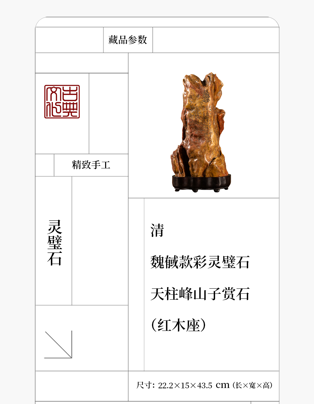 清 魏戫款彩灵璧石天柱峰山子 赏石(红木座)