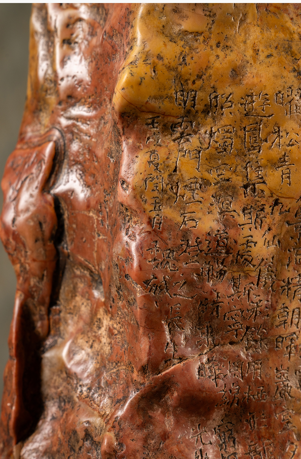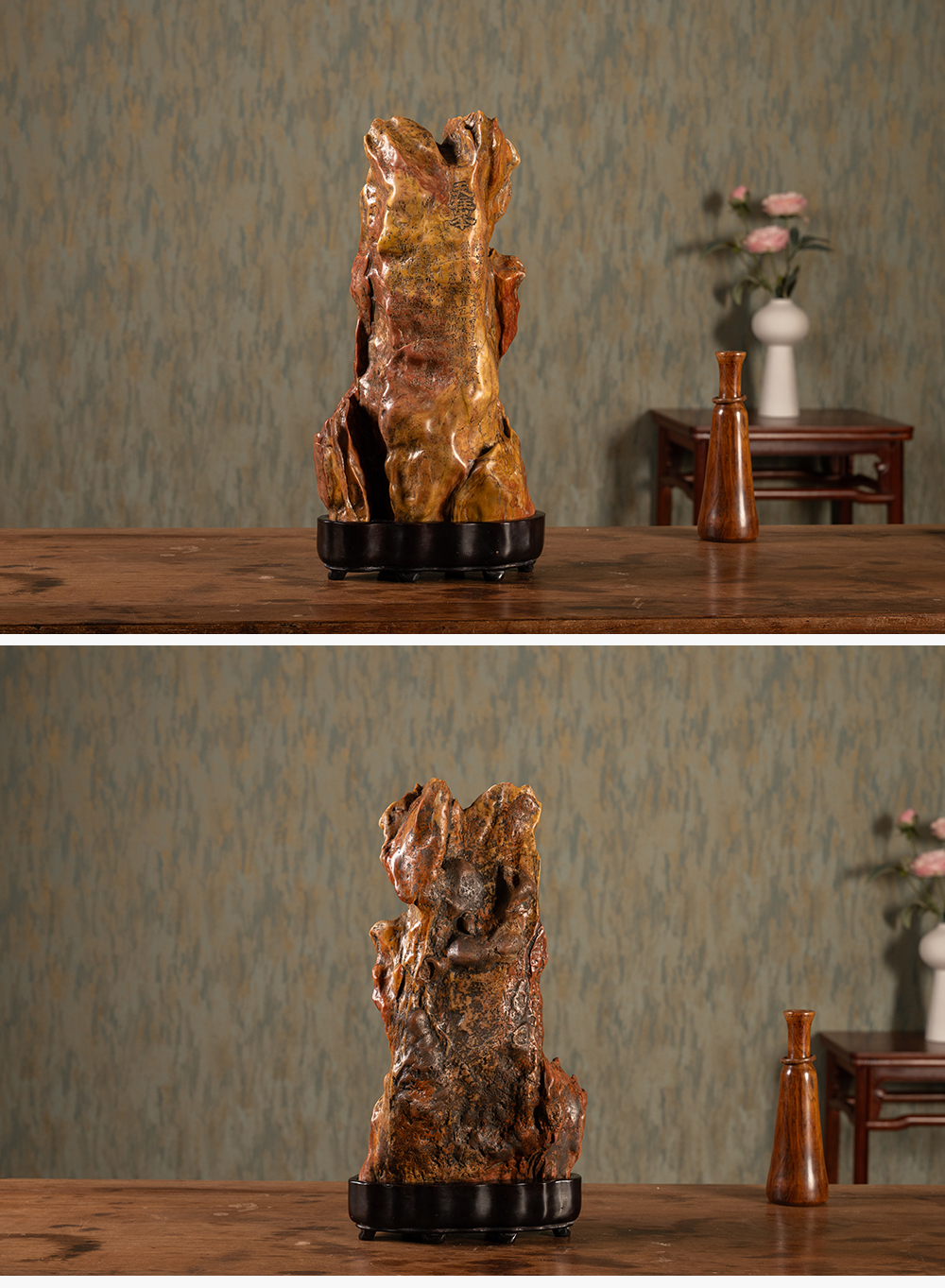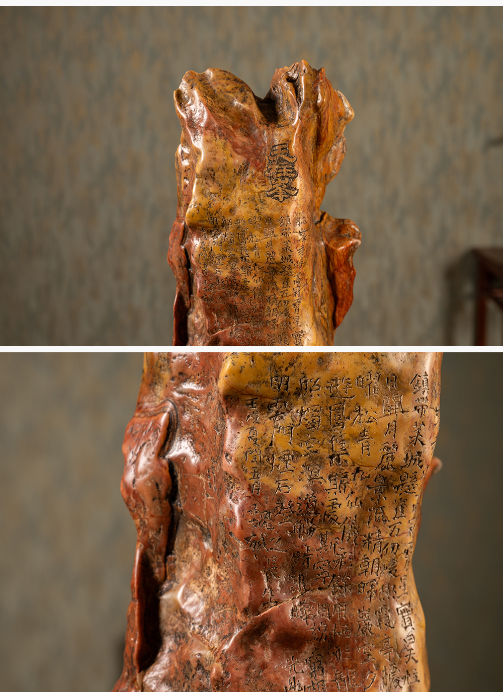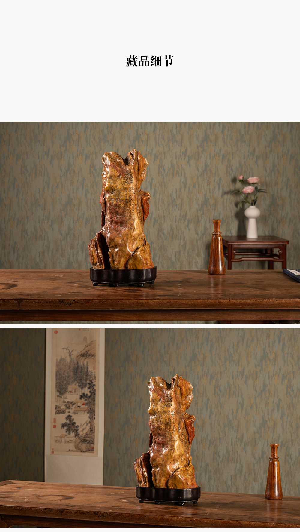 清 魏戫款彩灵璧石天柱峰山子 赏石(红木座)