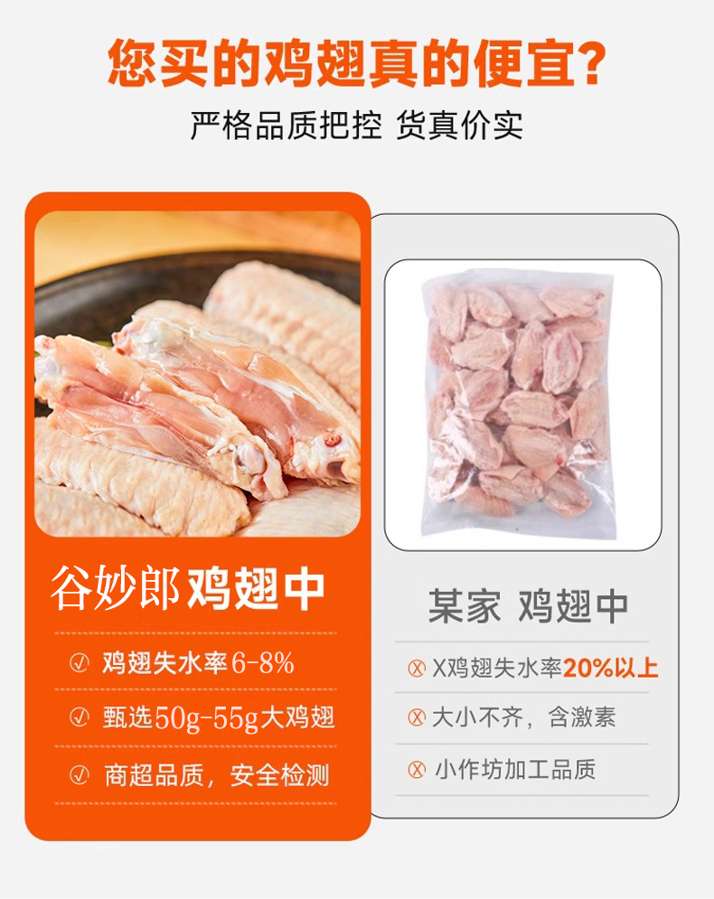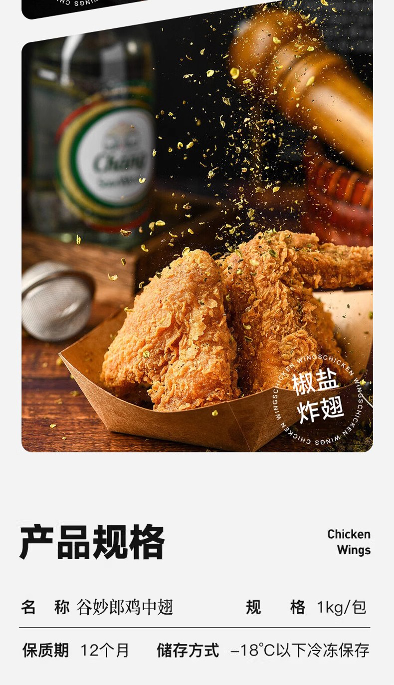谷妙郎单冻鸡中翅/1包(18-20个,共约1kg)生产日期:25年3月